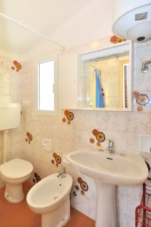 Small resort "Cassiopea". 15 houses in the residence. In the district of Bibione-Spiaggia 400 m from the centre of Bibione, 13 km from the centre of Lignano, 100 km from the centre of Venezia, in a central position, 150 m from the sea. Shop 400 m, supermarket 350 m, restaurant 400 m, bus stop 600 m, railway station "Latisana (Milano-Venezia-Triest)" 21 km, sandy beach 150 m, thermal baths "Bibione Thermae" 2.4 km. Golf course (18 hole) 11 km. Nearby attractions: Oasi Naturalistica Val Grande - Bibione. The photo is just an example. All houses/apartments are individually designed/furnished.3-room semi-detached house 37 m2 on 2 levels. Simple and practical furnishings: living/sleeping room with 1 sofabed, dining table, satellite TV and air conditioning. Exit to the terrace. Small, open kitchen (Gas stove, 4 gas rings, electric coffee machine). Upper floor: 1 double bedroom. 1 room with 2 beds. Shower/WC. No heating option. Terrace, small garden. Terrace furniture, barbecue. Facilities: children's high chair, baby cot (extra). Parking (roofed, 1 car) at the house, height 185 cm. Maximum 1 pet/ dog allowed. IT027034C25WT97EP2