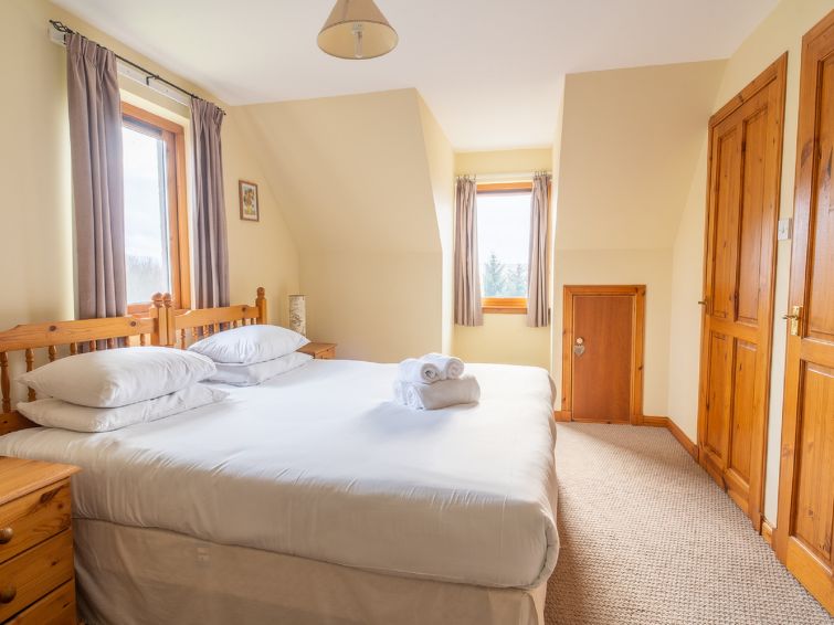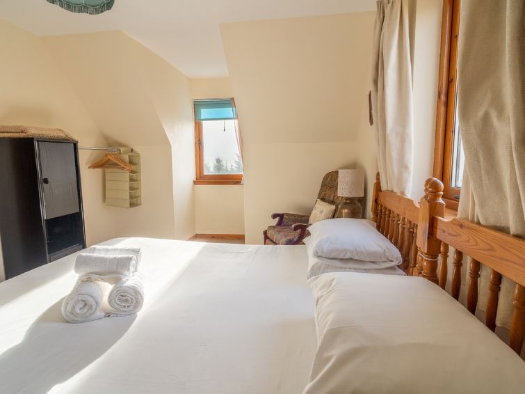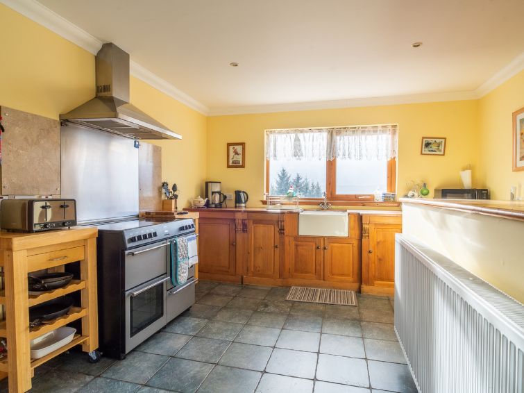 Very beautiful house "Ceilidhtail Cottage", 3 storeys, detached. On the outskirts, 2.5 km from the centre of Drumnadrochit, in a secluded, quiet position on top of a hill, 2 km from the lake. Private: natural garden. Patio, garden furniture. Pre-arrival grocery service. 4x4 car recommended in winter. Parking at the house. Shop 2.5 km, grocery 2.5 km, supermarket 20 km, shopping centre 20 km, restaurant 1.5 km, bar 2.5 km, bakery 2.5 km, café 2 km, 2 minute walk to the centre, bus stop 2 km, railway station 20 km. Golf course (18 hole) 20 km. Nearby attractions: Urquhart Castle 5 km, Loch Ness 2 km, Loch Ness Exhibition Centre 2 km, Fort Augustus 30 km, Jacobite Boat Trips 3 km, Culloden Battlefield 33 km. Well-known lakes can easily be reached: Loch Affric 29 km, Loch Meiklie 9 km. Hiking paths: Great Glen Way 1 km, Abriachan Forest 10 km, Glen Affric 29 km. Please note: car recommended. Suitable for families.5-room house on 3 levels. Spacious and bright, tasteful and stylish furnishings: large living room with TV (flat screen), wood-burning stove. Exit to the terrace. Dining room with dining table. Large kitchen (oven, dishwasher, 4 induction hot plates, toaster, kettle, microwave, freezer, grill, electric coffee machine) with dining table. Sep. WC. On the lower ground floor: sep. WC. Upper floor: 1 double bedroom with 1 double bed. 1 small room with 2 beds. 1 double bedroom with 1 double bed, hand-basin and shower/WC. Bath/shower/WC. Heating. Terrace furniture, deck chairs. Marvellous panoramic view of the countryside. Facilities: washing machine, children's high chair, baby cot for up to 2 year olds (extra). Internet (WiFi, free). Parking. Please note: suitable for families. Maximum 2 pets/ dogs allowed. Smoke alarm. Pets are only allowed downstairs. HI-50981-F