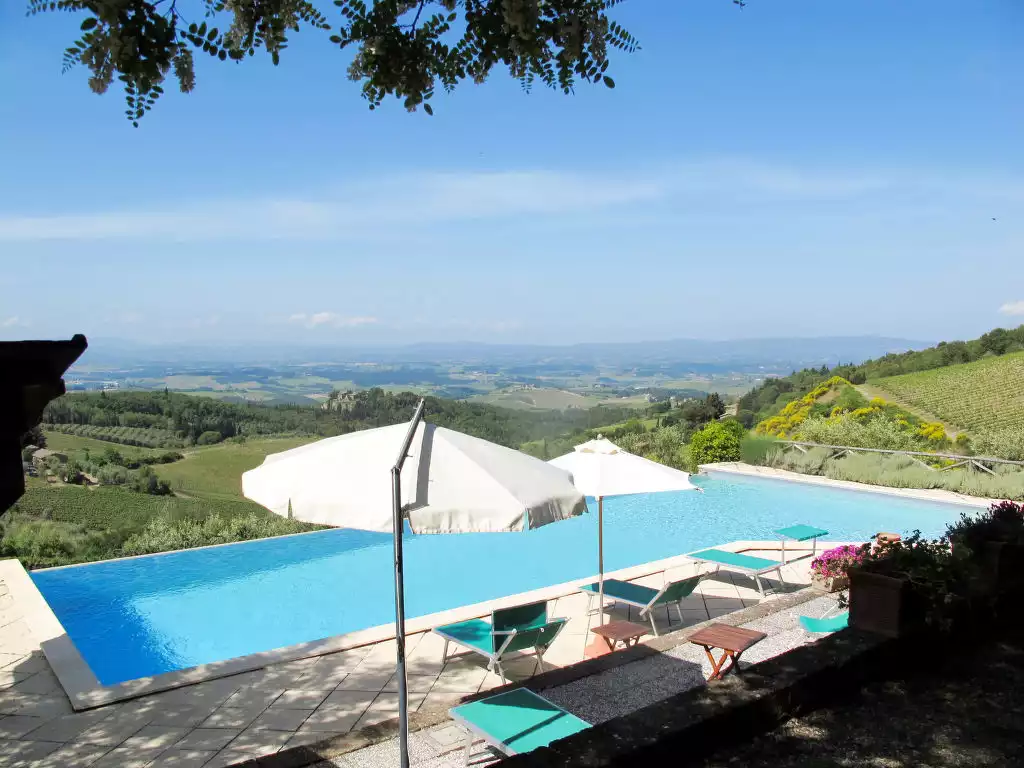 Beautiful on a vinyard country house "Cellole", detached, surrounded by trees and vineyards. 6 apartments in the residence. 2.5 km from the centre of Castellina in Chianti, 11 km from the centre of Radda in Chianti, outside the resort, 17 km from the centre of Siena, in an elevated position on a slope, 92 km from the sea, in the countryside. For shared use: property 11 ha with plants and trees, swimming pool (12 x 6 m, depth 120 - 220 cm, seasonal availability: 15.Apr. - 31.Oct.). Shower/WC in the pool area, pergola, terrace, garden furniture, barbecue. In the complex: reception, WiFi, washing machine (extra) (for shared use, extra). Motor access (150 m via unmade road). Parking on the premises. Supermarket 2.5 km, bus stop 500 m, railway station "Poggibonsi" 14 km, sandy beach "Marina di Bibbona" 92 km. Nearby attractions: Monteriggioni 10 km, Wine area Chianti Classico 10 m. Local sale of farm products."Cellole - Cellole 2 (CTC151)", 3-room apartment 80 m2 on 1st floor. Rustic and cosy furnishings: living room with open-hearth fireplace (only for decoration), TV and radio. 1 room with 1 french bed (160 cm). 1 room with 2 beds (80 cm), shower/WC. Kitchen (oven, 4 gas rings, toaster, electric coffee machine) with dining table. Shower/WC. Gas heating (extra). Heating available only from 01.11. to 15.04. Comfortable furnishings in the country house style. Terrace. Terrace furniture. Beautiful view of the garden and the countryside. Facilities: mosquito net, children's high chair, baby cot. Please note: non-smokers only. Maximum 1 pet/ dog allowed. Private entrance. No mandatory extra charges to be paid on-site except for local tax. Bedlinen, towels, final cleaning and all energy costs are included. IT052005B5PK8QKXA9