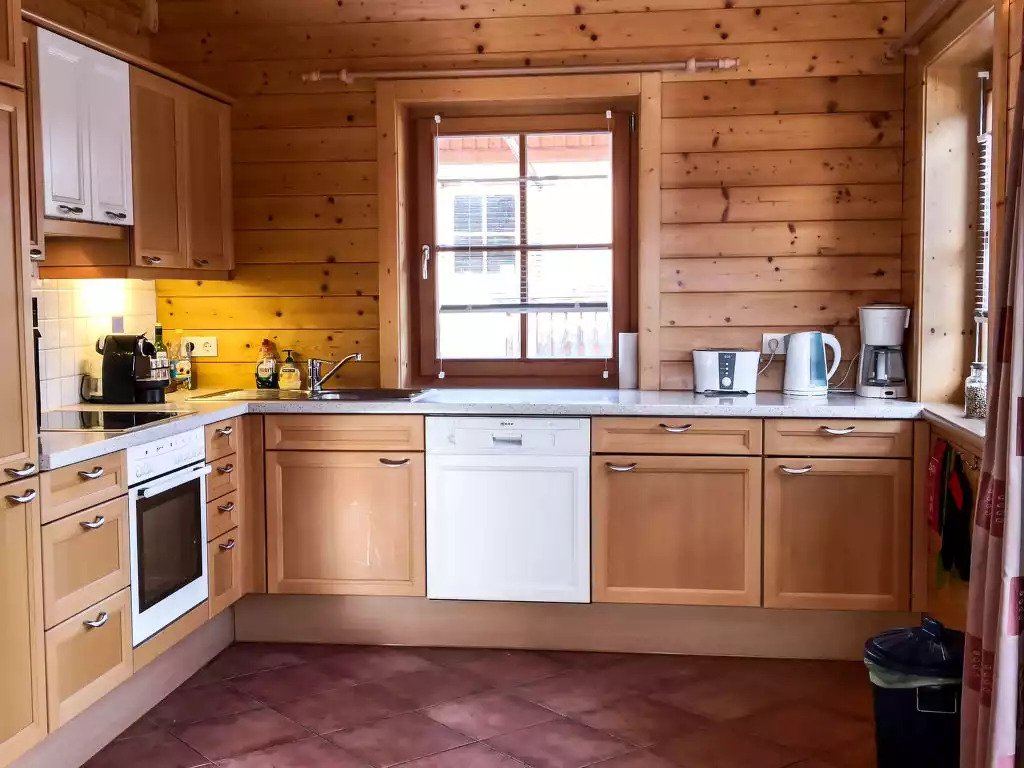 Wiedweg 2 km from Bad Kleinkirchheim: Chalet "Jupiter", 2 storeys. On the outskirts, in an elevated position, on the golf course. Private: natural state property. In the house: storage room for skis, central heating system, washing machine. Bumpy motor access (100 m via unmade road). In Winter: please take snow chains. Roofed, parking (for 2 cars) at the house. Supermarket 500 m, restaurant 300 m, bus stop "Patergassen" 300 m, railway station "Spittal an der Drau", outdoor swimming pool 4 km, indoor swimming pool 4 km, thermal baths "Römerbad / Therme St. Kathrein" 4 km. Golf course (18 hole) 50 m, tennis 4 km, gondola lift 4 km, ski school 4 km, cross country ski track 100 m, children's playground 4 km. Well-known ski regions can easily be reached: Bad Kleinkirchkeim - Sankt Oswald 4 km, Falkert 8 km, Turracher Höhe 15 km. Well-known lakes can easily be reached: Millstättersee 18 km, Ossiacher See 20 km, Wörthersee 37 km. Hiking paths: Nockberge. Please note: car recommended. Object suitable for 6 adults."Chalet Jupiter", 4-room chalet 100 m2 on 2 levels. Object suitable for 6 adults. Tasteful and wooden furniture furnishings: living/dining room with dining nook and digital TV. Exit to the balcony. 2 double bedrooms. Open kitchen (oven, dishwasher, 4 ceramic glass hob hotplates, kettle, microwave, electric coffee machine, Capsules for coffee machine (Nespresso) extra). Sep. WC. On the lower ground floor: entrance hall. 1 double bedroom. Shower/WC, double hand-basin. Underfloor heating. Wooden floors. Large balcony, terrace partly roofed. Balcony furniture. Very beautiful view of the mountains and the countryside. Facilities: children's high chair, baby cot for up to 2 year olds. Internet (WiFi, free). Parking (roofed, 2 cars). Please note: non-smokers only. 2 small pets/ dogs allowed. Smoke alarm. AmazonFire TV and Netflix access in the house. The kitchen equipment includes a Nespresso machine, toaster and kettle.
