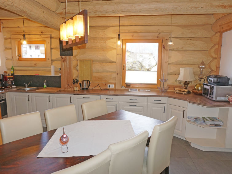 Bio - chalet "Chalet Karin", built in 2014. In the resort 14 km from the centre of Innsbruck, in a quiet, sunny position, 6.4 km from the lake, 3.5 km from the skiing area. Private: property 1'000 m2, well-kept garden, lawn for sunbathing, biotope. Outdoor shower, terrace, garden furniture, barbecue. In the complex: sauna (extra). Hot tub, storage room for bicycles, storage room for skis, central heating system, washing machine, tumble dryer, ski boot dryer. Parking (for 3 cars) at the house. Supermarket 400 m, restaurant 450 m, bar, bakery 400 m, bus stop "Eibl" 350 m, railway station "Völs" 7 km, outdoor swimming pool 8 km, bathing lake "Natterer See" 6.4 km. Walking paths from the house 100 m, skisport facilities 3.5 km, slopes 3.5 km, ski rental 500 m, ski bus stop 250 m, ski school 8.5 km, sled run 500 m, cross country ski track, ice rink 800 m. Well-known ski regions can easily be reached: Axamer Lizum 8.5 km, Mutterer Alm/ Götzner Bahn 3.5 km. Neighbourhood highly sensitive to noise. Quietness and good behaviour expected. Outdoor sauna opposite the main entrance. Lockable shed for skis and bicycles. Electric vehicle charging station 200m away. The spa bath is a hot tub.4-room chalet 120 m2 on 2 levels. Romantic and wooden furniture furnishings: entrance hall. Living/dining room with cable TV (flat screen), hi-fi system, DVD and wood-burning stove. Exit to the terrace. Large, open kitchen (oven, dishwasher, 4 ceramic glass hob hotplates, microwave, freezer, electric coffee machine). Bath/shower, sep. WC. Top floor: 2 double bedrooms. 1 room with 1 bed and 1 double bed. Exit to the balcony. Shower/WC. Wooden floors. Large garden. View of the countryside. Facilities: hair dryer. Internet (WiFi, free). Please note: non-smokers only. Maximum 2 pets/ dogs allowed. Suitable for allergy sufferers, smoke alarm. 2nd dog can be booked and would incur an extra charge of 15 € per day. 1 bunch of wood for free per day! Each additional on site 10 €. Bookings accepted for holiday purposes only.