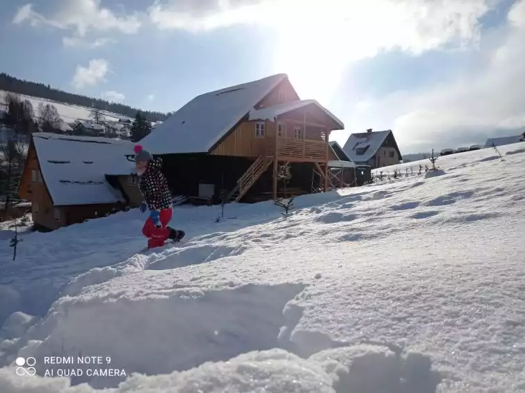 Very beautiful country house "Chalupa U Bobra", 2 storeys, detached. 2 apartments in the property. In a quiet, sunny position, 500 m from the edge of the forest, 1.3 km from the skiing area, 1.7 km from the river, 10 m from the stream. For shared use: property. Patio, barbecue, fireplace, children's playground (slide, swing). In the house: WiFi, sauna (extra). Playroom, table football, storage room for bicycles, storage room for skis, central heating system. Parking at the house. Grocery 500 m, supermarket 1 km, restaurant 800 m, bus stop "Rokytnice nad Jizerou, nám." 1 km, outdoor swimming pool 4 km, indoor swimming pool 20 km. Golf course (9 hole) 15 km, tennis 2 km, minigolf 8 km, walking paths from the house 10 m, cycle lane 300 m, ski lift 1.3 km, chair lift 1.3 km, slopes 1.3 km, ski rental 1.3 km, ski school 1.3 km, cross country ski track 1.3 km, children's playground 1 km. Nearby attractions: Huťský vodopád 5 km, Harrachov - sklárna, minipivovar, Mumlavský vodopád, bobová dráha 14 km, Příchovice, Kořenov, Jizerka 15 km, Jilemnice, Szklarska Poręba 20 km, Zoo, Aquapark Babylon Liberec 40 km. Well-known ski regions can easily be reached: Rokytnice nad Jizerou 3 km, Paseky na Jizerou 7 km, Harrachov, Vítkovice 13 km. Well-known lakes can easily be reached: Vodní nádrž Souš 20 km. Hiking paths: Okolo Rokytnice 500 m, Pašerácká stezka 2 km, Krakonošova cesta 5 km. Please note: suitable for families, suitable for seniors baby equipment on request (included). The sauna is accessible from the outside, it is for 8 guests. Sauna is available in the period 1.11.-30.4. (for free), in the period 1.5.-31.10. is on request (and for an extra charge).4-room apartment on 1st floor. Very beautiful and luxurious furnishings: 3 rooms, each room with 4 beds, dining table, kitchen corner, shower/WC and TV. Large living room with TV. Large garden. Barbecue, sitting area. Beautiful view of the countryside. Facilities: children's high chair, baby cot. Internet (WiFi, free). Please note: non-smoking house. Maximum 1 pet/ dog allowed. Fire extinguisher. Beer tap available.