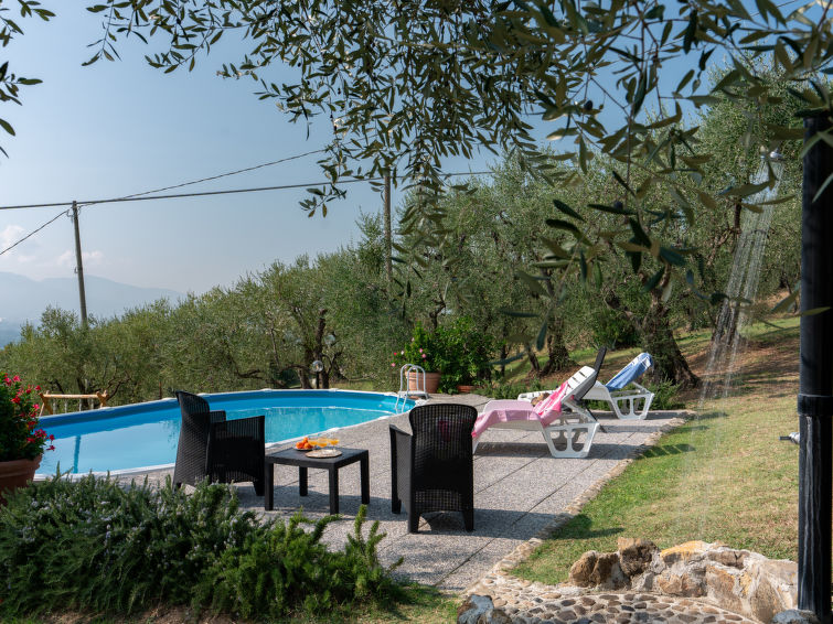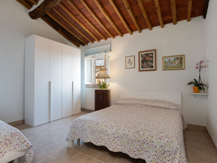 Country house "Chantal", 170 m a.s.l.. 9.3 km from the centre of Capannori, 15 km from the centre of Lucca, 40 km from the centre of Pisa, in a sunny position, 40 km from the sea, in the countryside. Private: garden 3'000 m2 (fenced), swimming pool (4 x 8 m, depth 130 cm, seasonal availability: 01.Apr. - 31.Oct.). Outdoor shower, garden furniture, pool maintenance by the owner/gardener. In the complex: central heating system, washing machine (for shared use), heating to be paid on the spot, heating available only from 01.Nov. - 04.Apr.. Motor access to the house (50 m via unmade road). Parking on the premises. Shop 2 km, supermarket 15 km, restaurant 4 km, bus stop 50 m, railway station 8 km, sandy beach "Versilia" 40 km, thermal baths "Montecatini Terme" 17 km. Golf course (18 hole) 30 km. Nearby attractions: Collodi 6 km, Montecarlo 10 km, Bagni di Lucca 30 km, Vinci 37 km, San Miniato 39 km, Firenze 85 km. Local sale of farm products. Please note: the owner lives on the same property.4-room apartment 75 m2 on 1st floor. Renovated in 2021, practical and tasteful furnishings: living room with satellite TV. Dining room. 1 room with 1 bed and 1 double bed. 1 double bedroom. Kitchenette (5 hot plates, oven, dishwasher, toaster, freezer, electric coffee machine) with air conditioning. Shower/bidet/WC. Panoramic view of the countryside. Facilities: iron, mosquito net, children's high chair, baby cot for up to 2 year olds. Internet (WiFi, free). Suitable for families. IT046007C2HZMYIJVB