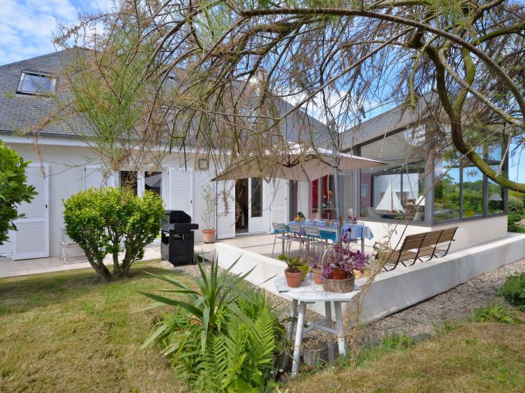 Single-family house "Chante-Brise", surrounded by trees and fields. 3 km from the centre of Plérin-sur-Mer, 5 km from the centre of St. Brieuc, in the residential district, 1 km from the sea. Private: garden 2'800 m2 (fenced) with wildlife garden and trees, meadow, orchard, parking on the premises. Supermarket 2 km, bus stop 2 km, sandy beach "Plage des Rosaires" 1 km, rocky beach 3 km, indoor swimming pool 5 km. Sports harbour 6 km, golf course (18 hole) 20 km, tennis 900 m."Chante-Brise", 5-room house 120 m2 on 2 levels. Beautiful and cosy furnishings: living/dining room with veranda with dining table and TV (flat screen), radio, hi-fi system and DVD. Exit to the veranda. 1 room with 1 french bed (160 cm, length 190 cm). Exit to the terrace. 1 room with 1 french bed (140 cm, length 190 cm). Exit to the terrace. Open kitchen (oven, dishwasher, 2 induction hot plates, 2 gas rings, toaster, kettle, microwave, freezer, electric coffee machine). Shower, sep. WC. Upper floor: small office with sloping ceilings. 2 rooms with sloping ceilings with rooflight, each room with 1 french bed (140 cm, length 190 cm). Shower, sep. WC, double hand-basin. Electric heating. Terrace 40 m2, south facing position and, east facing position. Terrace furniture, barbecue (portable), deck chairs (4). Facilities: washing machine, dryer, iron, children's high chair, baby cot, hair dryer. Internet (WiFi, free). Please note: non-smoking house. Maximum 1 pet/ dog allowed. Smoke alarm. When there are less than the maximum number of guests staying at the property, not all of the bedrooms will be available for use. 22187/24/22