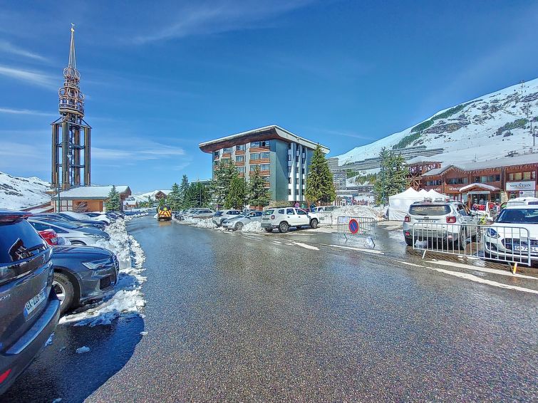 Beautiful residence "Chanteneige La Croisette". In the district of la Croisette, in the centre of la station, directly by the skiing area. In the complex: lift, storage room for skis, central heating system. Motor access to the house. Public parking 20 m. Bus stop "ARRET la croisette" 200 m. Sports centre, skisport facilities, slopes 20 m, ski rental 15 m, ski school, ski-kindergarten 50 m. Well-known ski regions can easily be reached: Domaine des 3 vallées. Please note: the photograph shows a typical example. Additional accommodations can be booked."Chanteneige 301", 2-room apartment 45 m2 on 3rd floor. Spacious, very comfortable and beautiful furnishings: large living/dining room with 1 bed (90 cm, length 190 cm), 1 pull-out bed (2 pers. 2 x 90 cm, length 190 cm), TV (flat screen). 1 room with 2 beds (90 cm, length 190 cm). Small kitchen (oven, dishwasher, 4 ceramic glass hob hotplates, kettle, microwave, electric coffee machine, raclette grill). Bathroom, sep. WC. Heating. South-west facing position. Covered balcony. View of the mountains. Facilities: washing machine, baby cot. Internet (WiFi, extra). Please note: non-smokers only. Smoke alarm. 73257004534SB
