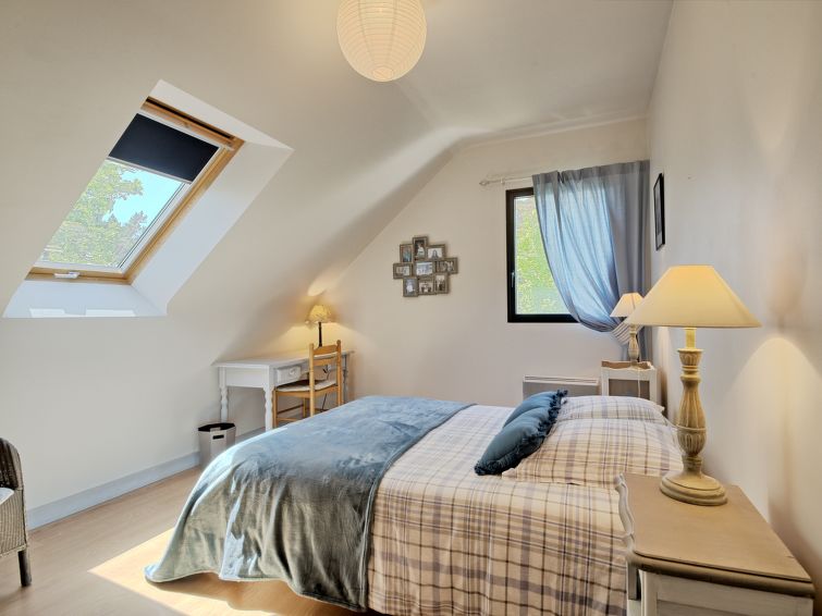 Large single-family house "Charme de Kerfago", built in 2013. In the district of Kerfago 800 m from the centre of Saint-Gildas-de-Rhuys, 7 km from the centre of Sarzeau, 350 m from the sea. Private: natural garden 850 m2 (fenced). In the house: storage room for bicycles. Storeroom available. Parking (for 3 cars) on the premises. Shop 800 m, supermarket 900 m, restaurant, bakery 600 m, bicycle rental 900 m, bus stop 800 m, sandy beach "Plage de Kerfago" 350 m. Sports harbour 400 m, sailing school 2 km, tennis 500 m. Nearby attractions: Golfe du Morbihan 5 km, Port-Crouesty-Arzon 9 km, Vannes 32 km, Carnac (Megalithes) 60 km. Hiking paths: GR34. The owner does not accept any youth groups.7-room house 160 m2. Object suitable for 10 adults. Spacious and bright, very beautiful furnishings: entrance hall. Large living room with TV (flat screen), hi-fi system. Exit to the garden. 1 room with 1 french bed (140 cm, length 190 cm), shower/WC. Exit to the garden. Kitchen (oven, dishwasher, 3 gas rings, toaster, kettle, microwave, freezer, electric coffee machine). Sep. WC. Upper floor: 1 room with sloping ceilings with 1 french bed (140 cm, length 190 cm). 1 room with sloping ceilings with 2 beds (90 cm, length 190 cm). 1 room with sloping ceilings with 1 double bed (2 x 80 cm, length 200 cm). 1 room with sloping ceilings with 1 bed (90 cm, length 190 cm). 1 room with sloping ceilings with 1 bed (90 cm, length 190 cm). Bathroom, shower, sep. WC. Electric heating. Terrace furniture, barbecue (portable), deck chairs (6). Facilities: washing machine, iron, children's high chair, baby cot for up to 2 year olds. Internet (WiFi, free). Please note: suitable for families. Non-smoking house. Smoke alarm. Offer by a private individual according to Art. 155, IV of CGI. 56214000115K7