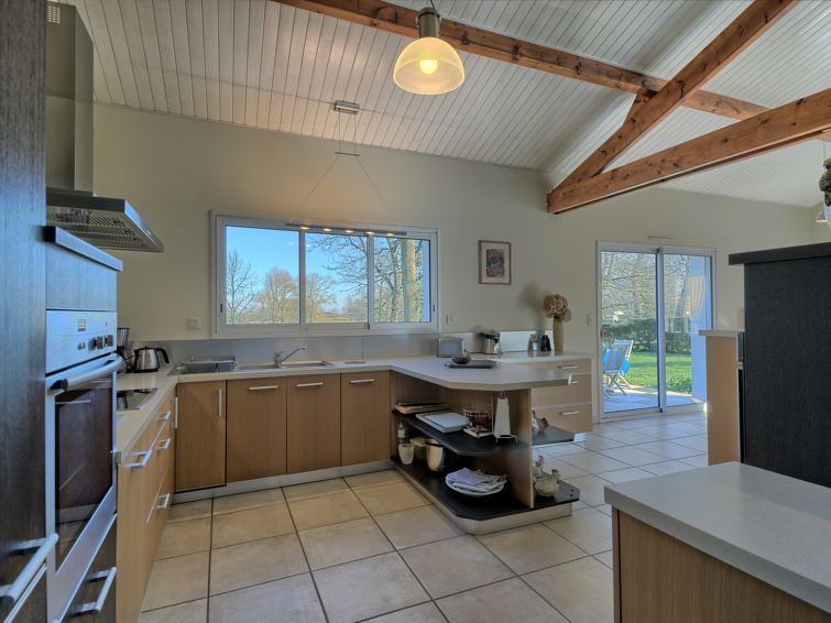 Beautiful single-family house "Charme de la Fradinière". 6 km from the centre of St. Hilaire-de-Riez, 3 km from the centre of Orouet, in the residential district, 6 km from the sea, in a cul-de-sac. Private: natural state property 1'500 m2 (fenced), trees. Terrace, garden furniture. Storeroom available. Parking. Carport. Shop 3 km, supermarket 6 km, bus stop 6 km, sandy beach 6 km. Nearby attractions: St-Gilles-Croix-de-Vie (depart pour Yeu) 9 km, Saint-Jean-de-Monts 10 km, Ile de Noirmoutier 30 km, Les Sables d'Olonne 35 km, Pornic 50 km, Nantes 70 km.4-room house 140 m2 on 2 levels. Comfortable furnishings: living/dining room with Scandinavian wood stove, dining table, satellite TV and international TV channels (flat screen), hi-fi system. Exit to the terrace. 1 room with Dressing room with 1 french bed (160 cm, length 200 cm). 1 room with 1 french bed (140 cm, length 190 cm). 1 room with 2 beds (90 cm, length 190 cm). Large, open kitchen (oven, dishwasher, 3 ceramic glass hob hotplates, toaster, kettle, microwave, freezer, electric coffee machine). Sep. WC, bath/shower/WC. Floor heating. Upper floor: open gallery with sloping ceilings. Facilities: washing machine, dryer. Internet (WiFi, free). Please note: smoke alarm. Instead of an enclosed bedroom, some sleeping areas are located in an open-plan area (gallery, alcove, etc.). Offer by a private individual according to Art. 155, IV of CGI.