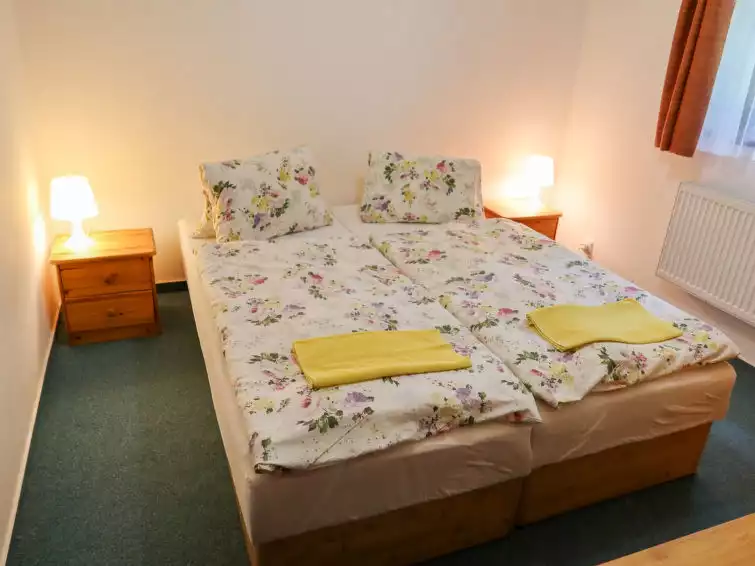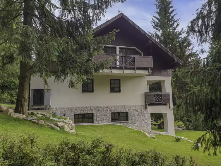 Cosy cottage "Labaika", 3 storeys, semi-detached, surrounded by trees. 500 m from the centre of Harrachov, in a quiet, elevated position, along the wooded area, 400 m from the skiing area. For shared use: property. Garden furniture, barbecue, fireplace. In the house: storage room for skis, central heating system. Except in winter 300 m. Parking at the house, in winter 400 m. Shop, supermarket 500 m, restaurant, bus stop "Harrachov, centrum" 500 m, railway station "Harrachov" 3 km, outdoor swimming pool 1.4 km. Tennis 2 km, indoor tennis centre 1.4 km, ski lift 400 m, chair lift, slopes, ski rental, ski school, children's ski school, cross country ski track 10 m. Nearby attractions: Bobová dráha 600 m, Muzeum skla 1 km, Skokanské můstky Harrachov 1 km, Mumlavský vodopád 2 km, Vosecká bouda, Dvořačky, Huťský vodopád 9 km, Vodopád Kamienczyka, Szklarki (PL) 12 km, Jablonec nad Nisou 27 km, Liberec 39 km. Well-known ski regions can easily be reached: Čertova hora 400 m, Zákoutí 1,4 km, Ryžoviště 2 km, Kořenov 7 km, Rokytnice nad Jizerou 15 km. Well-known lakes can easily be reached: Vodní nádrž Souš 15 km. Hiking paths: Western City(Pl) 40 km, Karpacz Wang,Park miniatury Kowary (Pl) 44 km, Giganteria Piechowice 23km, Dinopark(Pl) 15 km. Please note: the owner lives in the same residence. In winter, luggage can be unloaded/loaded at the house only if snow conditions permit. In winter, the road to the property (400 m) is not maintained.10-room semi-detached house on 3 levels. Entrance hall with Dressing room. Living room with Scandinavian wood stove and satellite TV. Kitchen (oven, dishwasher, 4 ceramic glass hob hotplates, toaster, kettle, microwave, electric coffee machine) with dining nook. Sep. WC. Upper floor: 1 room with 1 double bed and TV. 1 room with 1 double bed, shower/WC and TV. 1 room with 1 bed, 1 double bed and TV. Exit to the balcony. 1 room with 1 double bed, shower/WC and TV. 2nd upper floor: 1 room with sloping ceilings with 1 double bed and TV. 1 room with sloping ceilings with 3 beds, shower/WC and TV. 1 room with sloping ceilings with 1 bed, 1 double bed and TV. Exit to the balcony. 1 room with sloping ceilings with 1 double bed and TV. Bath/WC. 2 balconies. Facilities: children's high chair. Internet (WiFi, free). Please note: suitable for families. Non-smokers only.