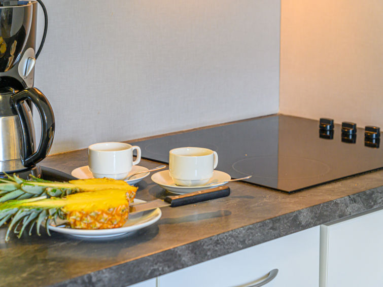 <Daily cleaning and change of linen possible on request and at extra cost. PRM accommodation. Beautiful, historical castle "Le Château de Kergonano", 4 storeys, from the 17th century, surrounded by trees and fields. 2 houses in the residence. 38 apartments in the residence. 1.8 km from the centre of Baden, 14 km from the centre of Vannes, outside the resort, 10 km from the centre of Auray, 3.5 km from the sea, in the countryside. For shared use: park 2 ha, well-kept garden with lawn and trees, swimming pool fenced (12 x 6 m, seasonal availability: 01.Apr. - 30.Sep.). In the complex: washing machine (extra) (for shared use). Parking on the premises. Grocery 1.8 km, supermarket 700 m, restaurant 3 km, bakery 700 m, bus stop "Baden centre" 1.5 km, sandy beach "Sept Iles" 3.5 km, thermal baths "Thalazur Carnac". Sports harbour 6 km, golf course (18 hole) 2 km, sailing school 6 km, riding stable 4 km. Nearby attractions: Le Golfe du Morbihan, Les îles du Golfe du Morbihan, Auray 10 km, Vannes 15 km, Presqu'ile de Quiberon 30 km, Belle île en Mer, Houat Hoedic. Hiking paths: Chemins des Douaniers, Le Tour de Bretagne GR34. The keys‘ handover takes place by the agency Interhome in Le Bono, 4 km."Château De Kergonano,", 3-room apartment 56 m2 on 1st floor. Practical and beautiful furnishings: living/dining room with 1 double sofabed and TV (flat screen). Exit to the balcony. 1 room with 1 french bed (1 x 140 cm, length 190 cm). 1 room with 1 x 2 bunk beds (90 cm, length 190 cm). Kitchenette (dishwasher, 4 ceramic glass hob hotplates, toaster, kettle, microwave, electric coffee machine). Shower, sep. WC. Electric heating. Balcony. View of the swimming pool and the garden. Facilities: Internet (WiFi, extra). Parking. Please note: non-smokers only. Smoke alarm. Daily cleaning and change of linen possible on request and extra. Offer by a private individual according to Art. 155, IV of CGI. LOGEMENT A19