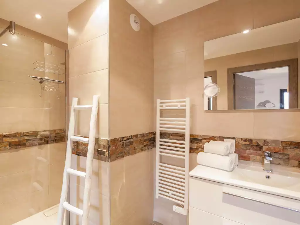 The Palazzu is composed of two buildings: the Bastion (lower part) and the Castle (upper part). Residence "Le Palazzu", built in 2016. 48 apartments in the residence. On the outskirts Porto-Vecchio, in an elevated position on a slope, 1 km from the sea, 10 km from the beach. For shared use: swimming pool (20 x 8 m, depth 160 cm, seasonal availability: 01.May. - 31.Oct.). Pool maintenance by the owner/gardener. In the complex: air conditioning. Steep motor access (via unmade road). Parking. Shop 1 km, grocery 400 m, supermarket 2.5 km, restaurant 400 m, bus stop 230 m, sandy beach 8 km. Marina 1 km, golf course (9 hole) 6 km, tennis 2 km, riding stable 3 km. Nearby attractions: Figari 21 km, Bonifacio 25 km, Solenzara 40 km, Iles Lavezzi. Hiking paths: L'Ospedale, Réserve Naturelle de Bonifacio. Please note: car recommended. Residence with electric gates."Château", 3-room apartment 68 m2 on 2nd floor. Object suitable for 2 adults + 2 children. Comfortable and cosy furnishings: living/dining room with 1 sofabed (140 cm, length 190 cm), satellite TV. Exit to the terrace. 1 room with 1 french bed (1 x 140 cm, length 190 cm). 1 children's room with 2 beds (80 cm, length 190 cm). Open kitchen (4 hot plates, oven, dishwasher, toaster, kettle, microwave, freezer, electric coffee machine). Shower, sep. WC. Electric heating, air-conditioning. Terrace 22 m2. Terrace furniture. View of the sea. Facilities: washing machine. Internet (WiFi, free). Please note: non-smokers only. Smoke alarm. 2A2470019432E