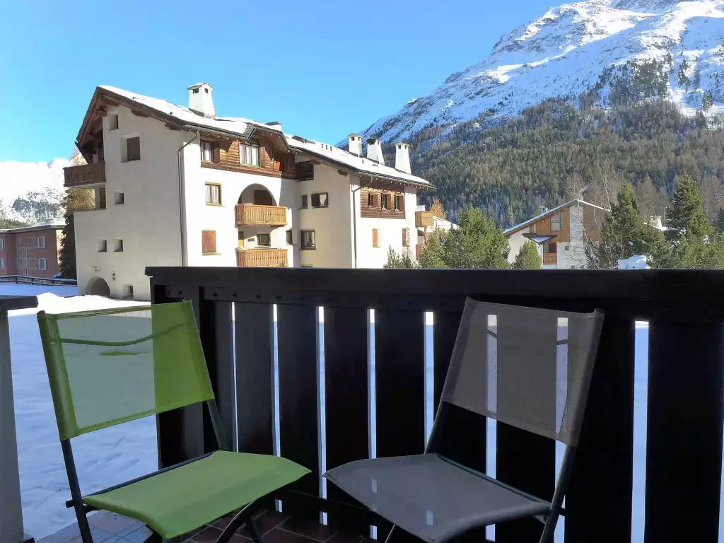 St. Moritz Bad: Comfortable apartment house "Chesa Arlas", 4 storeys, built in 1965. In a sunny, elevated position in the residential district, 800 m from the lake, 1.4 km from the skiing area. In the house: lift, central heating system, washing machine, tumble dryer (for shared use, extra). In Winter: please take snow chains, 4x4 car recommended in winter. Steep footpath to the house. Single garage at the house. Shop 450 m, supermarket 400 m, restaurant 400 m, bar 400 m, bakery 450 m, café 450 m, bicycle rental 550 m, bus stop "St Moritz Bad, Via Salet", railway station 2 km, indoor swimming pool 1 km, thermal baths "Heilbadzentrum St. Moritz" 1.2 km, lake St. Moritzer See 800 m. Golf course (18 hole) 7.3 km, surf school 5.7 km, tennis 1.5 km, indoor tennis centre 1.5 km, minigolf 1 km, riding stable 2.1 km, walking paths from the house 800 m, cycle lane 1 km, cable car 1.4 km, ski lift 1.4 km, slopes 1.4 km, ski rental 800 m, ski bus stop 400 m, ski school 1.6 km, children's ski school 1.6 km, sled run 5.6 km, cross country ski track 1 km, ice rink 750 m, children's playground 1.2 km. Nearby attractions: Segantini Museum 1.7 km, Engadiner Museum 800 m, Mili Weber-Haus 2.9 km, Olympia Bob Run mit Museum 2.2 km, Nietzsche Museum in Sils-Maria 10 km. Well-known ski regions can easily be reached: Corviglia Piz Nair 1.4 km, Corvatsch - Furtschellas 7 km, Diavolezza - Lagalb 19.7 km. Well-known lakes can easily be reached: St. Moritzer See 800 m, Silvaplaner See 5.7 km, Silser See 10 km. Hiking paths: Stazerwald & Stazersee, Corviglia Piz Nair, Muottas Muragl. The keys‘ handover takes place by the agency Interhome in St. Moritz Bad."Chesa Arlas A1", 3-room apartment 70 m2 on 1st floor. Practical and cosy furnishings: living/dining room with TV (flat screen), hi-fi system. Exit to the balcony. 1 room, window onto the courtyard with 1 double bed (2 x 90 cm, length 200 cm). 1 room, window onto the courtyard with 2 beds (90 cm, length 200 cm). Small kitchen (oven, dishwasher, 4 ceramic glass hob hotplates, toaster, kettle, electric coffee machine, Capsules for coffee machine (Nespresso) extra). Bath/WC. Heating. Parquet floors. Balcony furniture (2). Very beautiful panoramic view of the mountains and the countryside. Facilities: iron, hair dryer. Internet (WiFi, free). Garage space n A1 on the property, height 190 cm, width 210 cm. Please note: suitable for families. Non-smokers only, parking space for small car only. Maximum 1 small pet/ dog allowed.