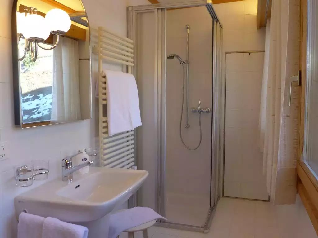 St. Moritz: Comfortable apartment house "Chesa Cripels", built in 1970, renovated in 2010, surrounded by trees. Above St. Moritz-Dorf 450 m from the centre of St. Moritz Dorf, in a quiet, sunny, elevated position on a slope, traffic calmed area, 250 m from the edge of the forest, 2 km from the lake, in a cul-de-sac. For shared use: garden (fenced). In the complex: central heating system, washing machine, tumble dryer (for shared use, extra). Steep motor access. In Winter: please take snow chains, 4x4 car recommended in winter. Steep footpath (30 steps) to the house. Single garage at the house. Shop 700 m, grocery 800 m, supermarket 1.9 km, restaurant 800 m, bar 800 m, bakery 1 km, café 1 km, pedestrian zone 800 m, bicycle rental 2.4 km, bus stop "St. Moritz, Kulm" 700 m, railway station 2 km, indoor swimming pool 2.8 km, thermal baths "Heilbadzentrum St. Moritz" 2.9 km, lake St. Moritzer See 2 km. Golf course (18 hole) 6.4 km, surf school 7.4 km, tennis 3.1 km, indoor tennis centre 3.1 km, minigolf 2.8 km, riding stable 4.4 km, walking paths from the house 250 m, cycle lane 2.8 km, cable car 3 km, mountain railway 350 m, ski lift 350 m, slopes 1 km, ski rental 400 m, ski school 500 m, sled run 5.5 km, cross country ski track 2.8 km, ice rink 2.4 km, children's playground 1.2 km. Nearby attractions: Segantini Museum 1.7 km, Engadiner Museum 1.5 km, Mili Weber-Haus 4.5 km, Olympia Bob Run mit Museum 1.2 km, Nietzsche Museum in Sils-Maria 11.6 km. Well-known ski regions can easily be reached: Corviglia Piz Nair 700 m, Corvatsch - Furtschellas 8.6 km, Diavolezza - Lagalb 19.5 km. Well-known lakes can easily be reached: St. Moritzer See 2 km, Silvaplaner See 7.4 km, Silser See 11.6 km. Hiking paths: Stazerwald & Stazersee, Corviglia Piz Nair, Muottas Muragl. Please note: car recommended, no lift. Loading and unloading of baggage is possible at the holiday house. The keys‘ handover takes place by the agency Interhome in St. Moritz Bad. Additional accommodations can be booked. approx. 500 m path of steps into the village centre."Chesa Cripels I", 3-room apartment 75 m2 on 2nd floor, east facing position. Spacious and bright, partly renovated in 2016, modern and cosy furnishings: living/dining room with satellite TV (flat screen), DVD. 1 large room with 2 beds (90 cm, length 200 cm), shower/bidet/WC. 1 small room with 2 beds (90 cm, length 200 cm). Small kitchen (4 hot plates, oven, dishwasher, toaster, kettle, electric coffee machine, Capsules for coffee machine (Nespresso) extra). Shower/WC. Parquet floors. Marvellous panoramic view of the lake and the mountains. Facilities: hair dryer. Internet (WiFi, free). Garage space n 4 on the property, height 205 cm, width 240 cm. Please note: suitable for families. Non-smokers only. Maximum 1 pet/ dog allowed. No lift.