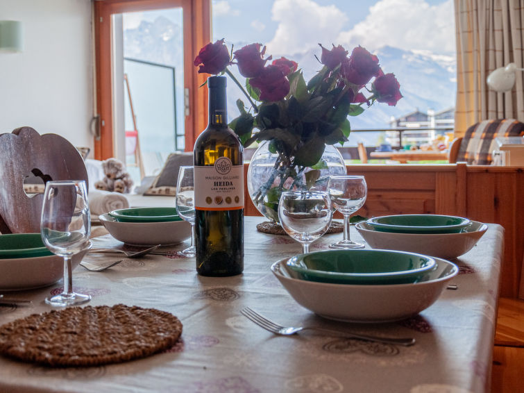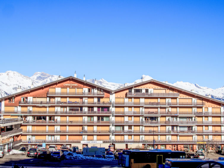Very simple residence "Christiania". In the centre, 50 m from the skiing area. In the house: boutique, lift, storage room for bicycles, storage room for skis, central heating system, washing machine, tumble dryer (for shared use, extra). Motor access to the house. Public parking 250 m extra. Supermarket 250 m, bar 50 m, bakery 20 m, bus stop "Haute-Nendaz télécabine" 100 m, railway station "Sion" 16.5 km, outdoor swimming pool 900 m. Tennis 900 m, skisport facilities 50 m, ski rental 10 m, ski-kindergarten 500 m, ice rink 250 m, children's playground 500 m. Well-known ski regions can easily be reached: Nendaz 4 vallées Tracouet 50 m. Hiking paths: Bisse Vieux 200 m, Bisse du milieu 200 m. Please note: ski bus (free of charge). Additional accommodations can be booked."Christiania 2 O1", 1-room apartment 38 m2 on 1st floor. Entrance hall with 1 x 2 bunk beds (80 cm, length 180 cm). Living/dining room with 1 pull-out bed (2 pers. 2 x 90 cm, length 200 cm), cable TV (flat screen). Kitchenette (3 hot plates, oven, kettle, microwave, electric coffee machine, raclette grill, fondue Set (cheese)). Bath/WC. Balcony, north facing position and west facing position. Beautiful view of the mountains and the valley. Facilities: hair dryer. Internet (WiFi, free). Please note: non-smokers only, no parking. 1 small pet/ dog allowed. Instead of an enclosed bedroom, some sleeping areas are located in an open-plan area (gallery, alcove, etc.).