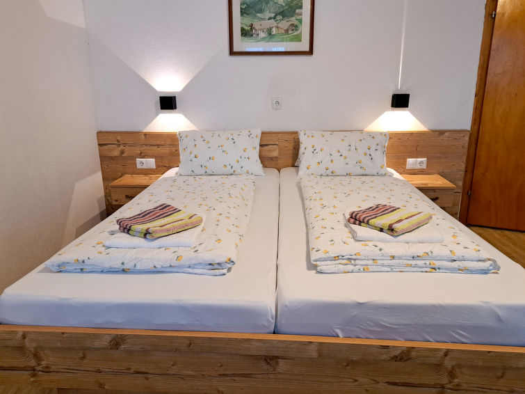 House "Christoph", surrounded by meadows. 200 m from the centre of Finkenberg, 3 km from the centre of Mayrhofen, 75 km from the centre of Innsbruck, on a slope. For shared use: lawn for sunbathing. Terrace, garden furniture. In the house: lounge, sauna (extra). Steam room (extra). Solarium (extra). Storage room for skis, ski boot dryer. Bread roll service. Parking on the premises. Shop 200 m, supermarket 3 km, bus stop "Finkenberg Dorf" 350 m, railway station "Mayrhofen Bahnhof" 4.1 km, outdoor swimming pool 600 m. Golf course (18 hole) 20 km, mountain railway 500 m, ski bus stop 200 m. Please note: The owner does not accept any groups. In case of good snow conditions, the house is accessible on skis. Additional accommodations can be booked."Christoph", 3-room apartment 60 m2 on 2nd floor. Spacious, practical and wooden furniture furnishings: living room with sloping ceilings with dining nook and satellite TV. Exit to the balcony. 1 double bedroom with sloping ceilings. 1 room with sloping ceilings with 1 sofabed and 1 double bed. Open kitchen (2 hot plates, dishwasher, toaster, kettle, microwave, electric coffee machine). Shower/WC. Heating. Carpet. Balcony 6 m2. Balcony furniture. Beautiful view of Mayrhofen. Facilities: children's high chair, baby cot. Internet (WiFi, free). Please note: non-smokers only. Smoke alarm, fire extinguisher. When there are less than the maximum number of guests staying at the property, not all of the bedrooms will be available for use.