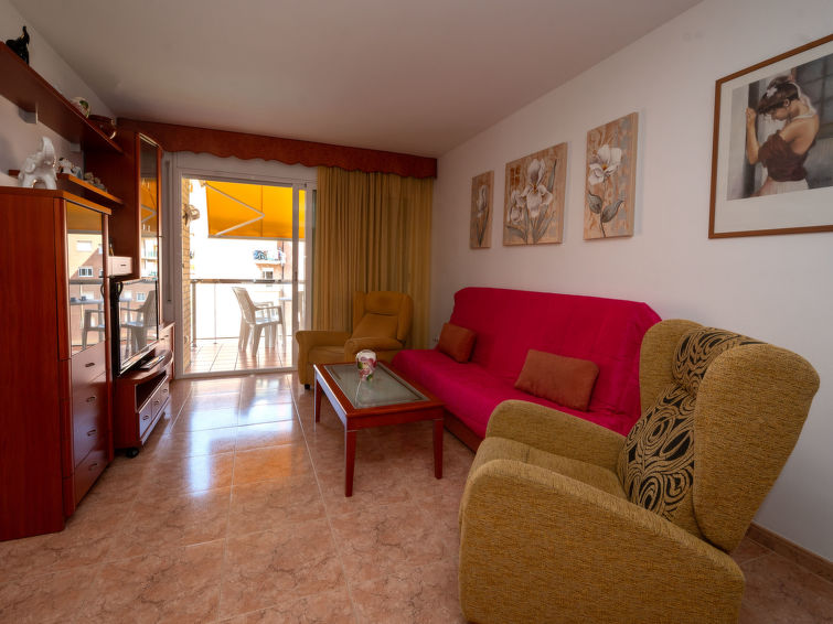 Beautiful, comfortable apartment block, built in 2003. From the sea, 200 m from the beach. For shared use: garden with lawn, swimming pool angular (15 x 7 m, seasonal availability: 01.Apr. - 31.Oct. pool opening hours: 10:00-22:00). WC in the pool area, outdoor shower, basketball, children's playground. In the house: lift. Roofed, parking, public parking on the road. Shop 400 m, supermarket 700 m, shopping centre 1.1 km, restaurant 300 m, bar, café 290 m, bus stop "L1361" 400 m, railway station "Santa Susana" 1.3 km. Nearby attractions: Barcelona 66 km, Mataro 36 km, Sant Pol 14 km, Blanes 8 km, Lloret 13 km. The owner does not accept any youth groups. Neighbourhood highly sensitive to noise. Quietness and good behaviour expected."Colom", 3-room apartment 51 m2. Object suitable for 2 adults + 2 children. Practical and comfortable furnishings: living/dining room with dining table, digital TV, electric heating and air conditioning. Exit to the balcony. 1 room with 1 french bed (135 cm, length 190 cm), electric heating and air conditioning. 1 room with 1 x 2 bunk beds (80 cm, length 190 cm), electric heating and air conditioning. Open kitchen (oven, dishwasher, 4 ceramic glass hob hotplates, toaster, kettle, microwave, electric coffee machine). Bath/bidet/WC. Balcony. Balcony furniture. View of the swimming pool and the garden. Facilities: washing machine, iron, hair dryer. Internet (WiFi, free). Garage (1 car). HUTB-073953 // Reg. Nr.: ESFCTU00000809800062536300000000000000000HUTB-0739537