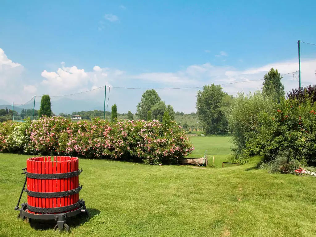 Residence "Il Colombaro", from the 14th century, renovated. 21 apartments in the residence. In the district of Cunettone di Salò 4 km from the centre of Salò, in a sunny position on top of a hill, 4 km from the lake, on the golf course. For shared use: property 150'000 m2, flowers and trees, meadow, swimming pool (14 x 7 m, seasonal availability: 15.May. - 30.Sep.). Children's pool, outdoor shower. In the complex: restaurant, bar, heating to be paid on the spot. Parking (limited number of spaces) on the premises, communal covered parking at the house. Supermarket 200 m, bus stop 500 m, pebble beach 4 km. Nearby attractions: Desenzano del Garda 19 km, Brescia 39 km."Colombaro Vecchio", 4-room apartment 100 m2, on the ground floor. Comfortable and rustic furnishings: living/sleeping room with 1 sleeping facility, dining table and satellite TV. 1 double bedroom. 2 rooms, each room with 2 beds. Kitchenette (dishwasher, 4 gas rings, microwave, freezer, electric coffee machine). Shower/bidet/WC, sep. WC. Gas heating, air-conditioning (extra). Patio roofed. Terrace furniture. Facilities: safe. Internet (WiFi, free). Parking, garage on the property. Maximum 1 pet/ dog allowed. IT017170B5OY8KGT49