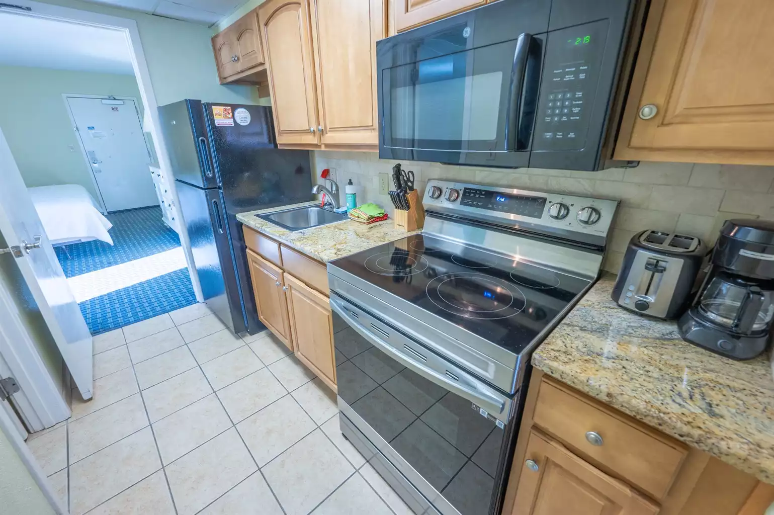AMENITIES: Starting 9/1/21, guests will not have access to the onsite restaurants (including the tiki bar and coffee shop), laundry facility, kids' slide area, or fitness center. All other water features are available, except the indoor pool in the Schooner building.
