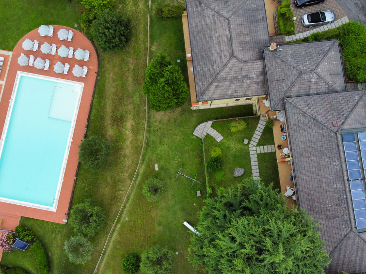 Residence "Corte Camaldoli". 20 apartments in the residence. On the outskirts, 1.2 km from the centre of Garda, on a slope, 1.5 km from the lake. For shared use: property 14'000 m2, well-kept terraced garden with lawn and trees, swimming pool (20 x 10 m, seasonal availability: 01.Apr. - 30.Oct.). WC in the pool area, outdoor shower, beach volleyball, patio, arbour, garden furniture, barbecue, children's playground. In the complex: reception, lounge with TV, internet access, WiFi, fitness room, table tennis, table football, storage room for bicycles, washing machine (for shared use), heating to be paid on the spot, bicycle rental. Bread roll service. Parking on the premises. Bus stop 20 m, pebble beach 1.5 km. Golf course (18 hole) 5 km. Nearby attractions: Peschiera del Garda 29 km, Malcesine 30 km, Verona 38 km. Hiking paths: Monte Baldo 30 km. The owner does not accept any youth groups. Residence with electric gates. Air conditioning only available from early June to mid September."Panoramico", 3-room apartment 60 m2. Comfortable furnishings: living/sleeping room with 1 sofabed, 1 pull-out bed, dining table, satellite TV, DVD and air conditioning. Exit to the garden, to the balcony. 1 double bedroom with air conditioning. 1 room with 2 beds and air conditioning. Open kitchen (dishwasher, 4 gas rings, toaster, kettle, microwave, freezer, electric coffee machine). Shower/bidet/WC. Gas heating (extra). Balcony or terrace. Terrace furniture. View of the countryside. Facilities: telephone, safe, hair dryer. Internet (WiFi, free). Parking (1 car). Please note: private entrance. IT023036B4MWIM4KFA