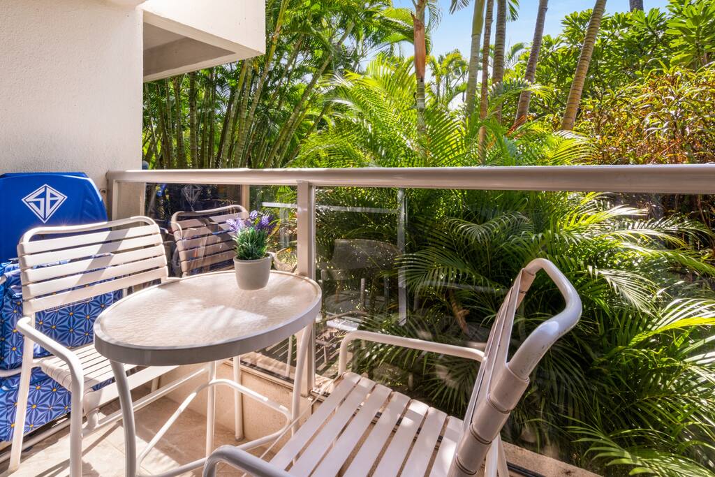 Our studio is on the "quiet" side of the resort, away from the traffic noise of South Kihei Rd and the parking lots of the resort. Because it is toward the rear of the resort, it is very private with much less foot traffic going by. There is also a second (less busier) swimming pool located right across this building.