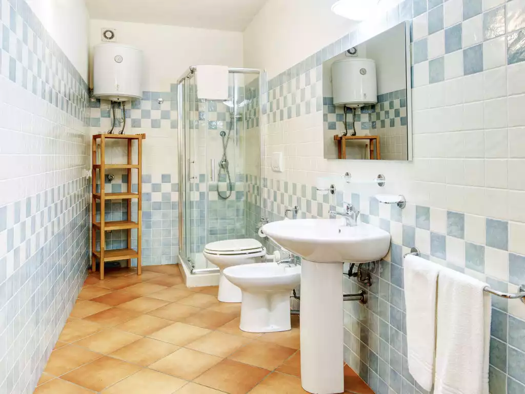 Small residence "Cristal Blu", 3 storeys. 21 apartments in the residence. In the district of Santa Teresa di Gallura 300 m from the centre of Santa Teresa di Gallura, in a central position, 800 m from the sea. For shared use: courtyard, swimming pool (12 x 6 m, depth 80 - 160 cm, seasonal availability: 03.Apr. - 23.Oct.). Outdoor shower. In the complex: reception, lounge, internet access, WiFi, washing machine, tumble dryer (for shared use), bicycle rental. Central parking spaces. Bus stop 450 m, sandy beach "'Rena Bianca'" 800 m. Marina 200 m. The photo is just an example. The holiday properties may differ in living space, floorplan, equipment and furnishing."Cristal Blu", 2-room apartment 30 to 45 m2, on the upper floor. Beautiful furnishings: living/sleeping room with 1 double sofabed, 1 folding bed, dining table and TV. Exit to the balcony. 1 room with 1 double bed (160 cm). Kitchenette (oven, 4 induction hot plates, toaster, kettle, microwave, freezer). Shower/WC. Electric heating, air-conditioning. Balcony. Balcony furniture. Facilities: safe, children's high chair, baby cot (extra), hair dryer. Internet (WiFi, free). Maximum 1 small pet/ dog allowed. IT090063B4000F3141