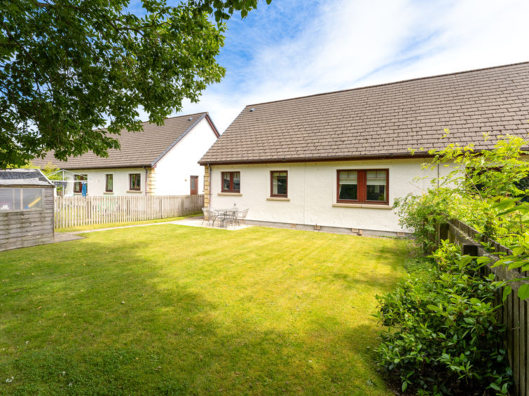 Child friendly, comfortable bungalow "Culduthel", semi-detached. 2 km from the centre of Aviemore, in a quiet, sunny position, 15 km from the lake, 18 km from the skiing area, in a cul-de-sac. Private: garden with lawn. Patio, garden furniture. In the house: storage room for bicycles, storage room for skis. Parking at the house, public parking. Shop 500 m, supermarket 2 km, restaurant 2 km, bar 2 km, bus stop "Aviemore (burnside rd)" 650 m, railway station "Aviemore" 2 km. Golf course (18 hole) 1 km, ski lift 18 km. Nearby attractions: Dalfaber Golf & Country Club 1 km, Cairngorm National Park, Highland Wildlife Park 15 km, Inverness 48 km, Landmark Forest Adventure Park 9 km, Highland Folk Museum 27 km. Well-known ski regions can easily be reached: Cairngorms ski resort 18 km, The Lecth Ski resort 54 km. Well-known lakes can easily be reached: Loch Morlich 15 km, Loch Garten 14 km, Loch Ness 69 km. Please note: car recommended. Baby equipment (included).4-room bungalow 81 m2. Large living/dining room with dining table and TV. 1 double bedroom with 1 double bed. 2 double bedrooms, each room with 2 beds. Kitchen (4 hot plates, oven, dishwasher, toaster, kettle, microwave, freezer, grill). Bath/shower/WC. Electric heating. Facilities: washing machine, children's high chair, baby cot for up to 2 year olds. Internet (WiFi, free). Please note: non-smoking house. TV only EN. Smoke alarm. HI-70395-F