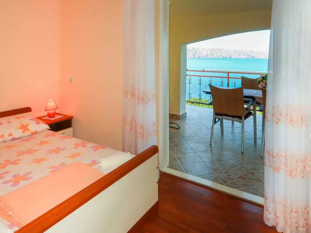 Apartment house "Dalibor". 2.2 km from the centre of Senj, 15 km from the centre of Klenovica, 20 km from the centre of Novi Vinodolski, 650 m from the sea, 650 m from the beach. For shared use: property 600 m2. Patio, terrace, barbecue. In the house: internet access (for shared use, extra). Parking on the premises. Shop 2.2 km, restaurant 1.2 km, bus stop 550 m, pebble beach 650 m."Dalibor", 2-room apartment 35 m2 on 2nd floor. Entrance hall with air conditioning. 1 room with 1 french bed (160 cm, length 200 cm). 1 room with 1 french bed (160 cm, length 200 cm). Exit to the balcony. Dining room with satellite TV. Exit to the balcony. Small kitchen in the entrance (2 hot plates, oven, 2 gas rings, toaster, kettle, electric coffee machine). Shower/WC. Heating (extra), air-conditioning (extra). Balcony 20 m2. Balcony furniture. View of the sea. Facilities: Internet (WiFi, free). Maximum 1 pet/ dog allowed.