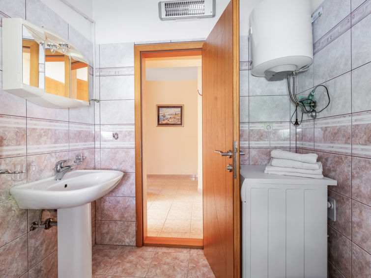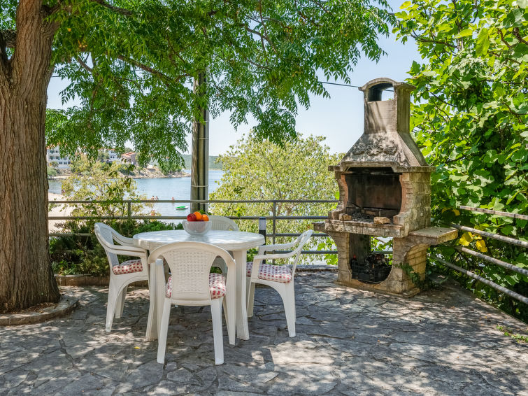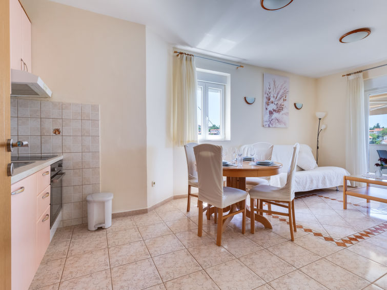 Ribnica 15 km from Novigrad: Apartment house "Daria". 7 km from the centre of Obrovac, in a quiet, sunny position, 40 m from the sea, 40 m from the beach. For shared use: barbecue. In the house: internet access. Parking at the house. Shop 400 m, restaurant 1.5 km, bus stop 25.3 km, pebble beach 40 m. The house is situated in a quiet bay with a gentle slope. It is an ideal place for children."Daria 3", 2-room apartment 50 m2 on 2nd floor. Living/dining room with 1 sofabed, satellite TV and air conditioning. Exit to the balcony. 1 room with 1 double bed. Open kitchen (4 hot plates, oven, dishwasher, freezer). Shower/WC. No heating option. Balcony. Balcony furniture. Marvellous view of the sea. Facilities: washing machine. Internet (WiFi, free).