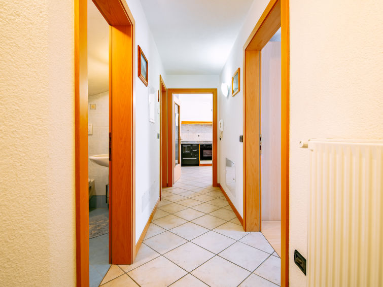 Muncion 5 km from Pozza di Fassa: Apartment house "El Tobia", 1'472 m a.s.l.. In the district of Muncion 5.5 km from the centre of Pozza di Fassa, 3.3 km from the centre of Pera di Fassa, 45 km from the centre of Bolzano. In the house: storage room for skis, ski boot dryer. In Winter: please take snow chains. Grocery 3.3 km, supermarket 5.5 km, bus stop "Pera di Fassa" 3 km, indoor swimming pool 10 km. Golf course (9 hole) 16 km, walking paths from the house 5 m, chair lift 3.3 km, gondola lift 5.2 km. Hiking paths: Gardeccia 3 km, Sasso Lungo, Campitello 8 km."Delago", 3-room apartment 60 m2, on the upper ground floor. Practical furnishings: 1 double bedroom. Exit to the balcony. 1 room with 2 beds and 1 sofabed. Exit to the balcony. Kitchen-/living room (oven, dishwasher, 4 ceramic glass hob hotplates, kettle, freezer, electric coffee machine) with dining nook and satellite TV. Exit to the balcony. 2 showers/WC. Gas heating. Balcony. Balcony furniture, deck chairs, box-room. Panoramic view. Facilities: washing machine, safe, iron. Internet (WiFi, extra). Parking (1 car), garage (1 car). Please note: non-smokers only. Maximum 1 pet/ dog allowed. IT022250C25RFOS8I9
