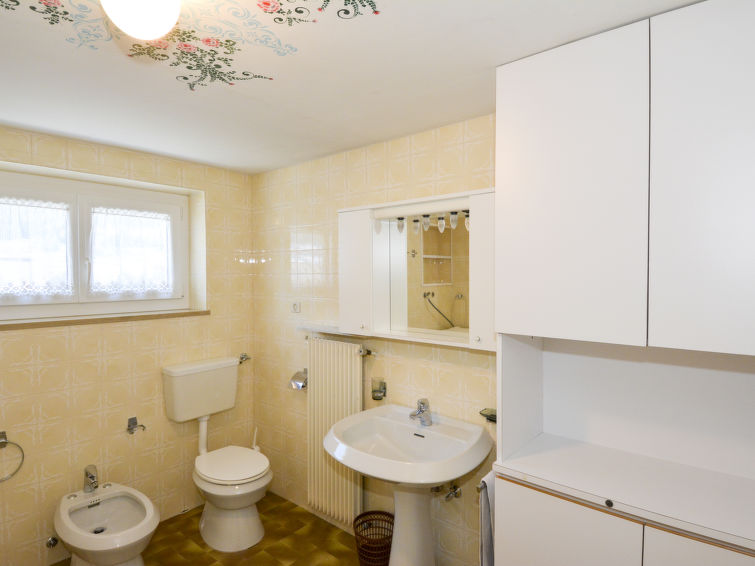 Cosy 3-family house "Deluca". 550 m from the centre of Pozza, 3 km from the centre of Vigo, 44 km from the centre of Bolzano, in a sunny position. In the house: storage room for skis. Parking on the premises. Grocery 450 m, supermarket 2 km, bus stop "Pozza di Fassa" 600 m, railway station "Bolzano" 44 km, indoor swimming pool 11.3 km. Ski lift, gondola lift, slopes 350 m, ski bus stop 200 m, cross country ski track 150 m. Well-known ski regions can easily be reached: Buffaure (Sella Ronda) 350 m, Alpe Luisa 10 km. Please note: the owner lives in the same residence."Deluca", 4-room apartment 90 m2 on 3rd floor. Bright, practical and wooden furniture furnishings: living/dining room with dining table and satellite TV. 1 room with 2 beds (80 cm). 1 room with 2 beds (80 cm), hand-basin. 1 room with 3 beds (80 cm), shower/WC. Kitchen (oven, dishwasher, 4 ceramic glass hob hotplates, kettle, freezer, electric coffee machine) with small dining table. Exit to the balcony. Bath/WC. Oil heating. 2 balconies. Balcony furniture, deck chairs (2). Beautiful view of the mountains. Facilities: washing machine, baby cot. Internet (WiFi, free). Please note: non-smokers only. IT022250C2RY39TAMV