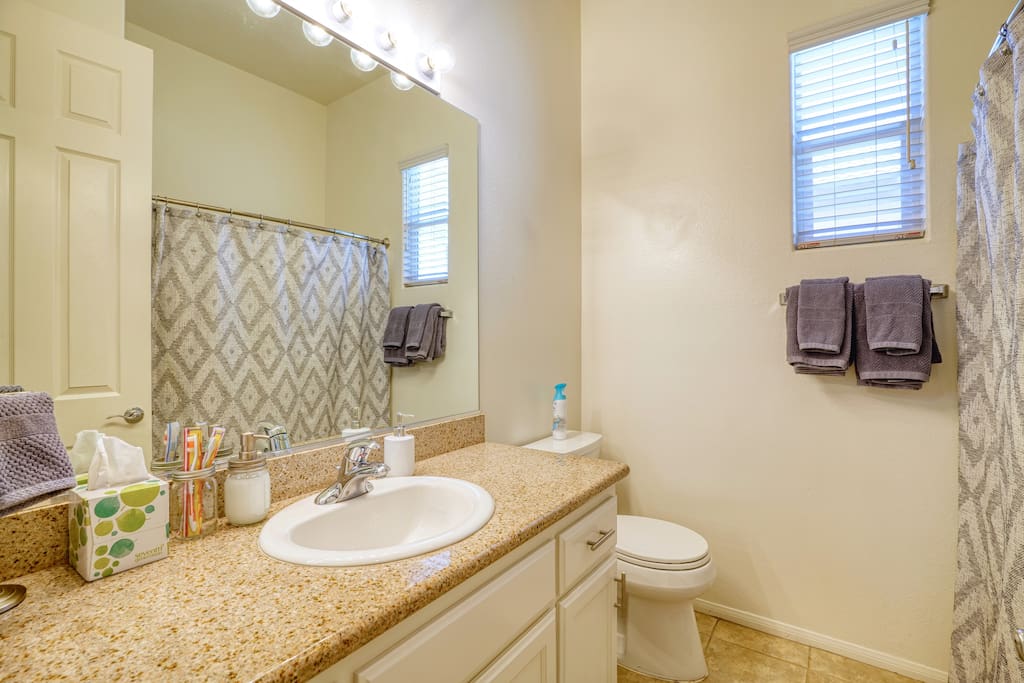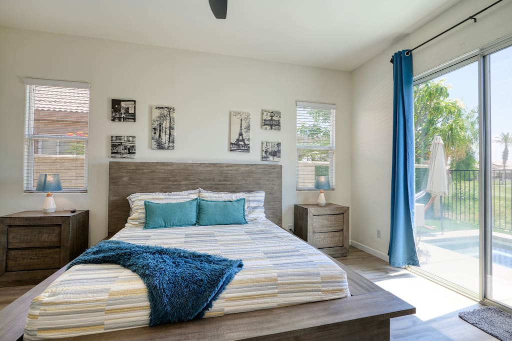 Relax and unwind in your beautiful, modern vacation home. Enjoy breakfast you prepare in your own kitchen, complete with cookware and tableware. Or, visit one of the many nearby restaurants (we're happy to make recommendations). Then, take in a morning round of golf or pickleball. Swim, go to the gym, or simply stay home and rest in one of the Tempur-pedic beds there's one in each room so you won't have to go far.