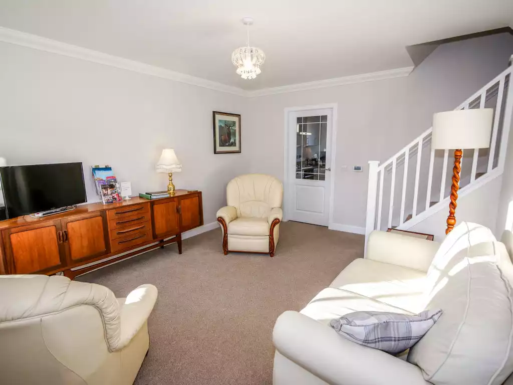 Modern, comfortable semi-detached house "Devonvale Place". In the district of Kinross, 1 km from the lake. Private: garden with lawn, parking (for 2 cars) at the house. Shop, supermarket 100 m, restaurant 500 m, bar, bus stop "Kinross Park and Ride" 50 m. Golf course (18 hole) 750 m. Nearby attractions: Edinburgh 40 km, Perth 27 km, Stirling 37 km, St Andrews 46 km, Gleneagles 28 km. Golfers are well catered for with many courses in the surrounding area, St Andrews and Gleneages are both under an hour away. Ideally located to explore Central Scotland, including Edinburgh, Perth, Dundee, St Andrews.4-room house 90 m2 on 2 levels. Comfortable and stylish furnishings: living room with TV, flat screen, CD-player and DVD. Exit to the garden. Kitchen (4 hot plates, oven, dishwasher, microwave) with dining table. Sep. WC. Upper floor: 1 double bedroom with 1 double bed and shower/WC. 1 room with 2 beds. 1 room with 1 bed. Bath/shower/WC. Heating. Patio, garden. Terrace furniture. Facilities: washing machine, children's high chair, baby cot for up to 2 year olds. Internet (WiFi, free). Please note: non-smoking house. King size master bed. Kinross lies on the shores of Loch Leven, a National Nature Reserve with picture perfect scenery. Bike and golf storage available on req.