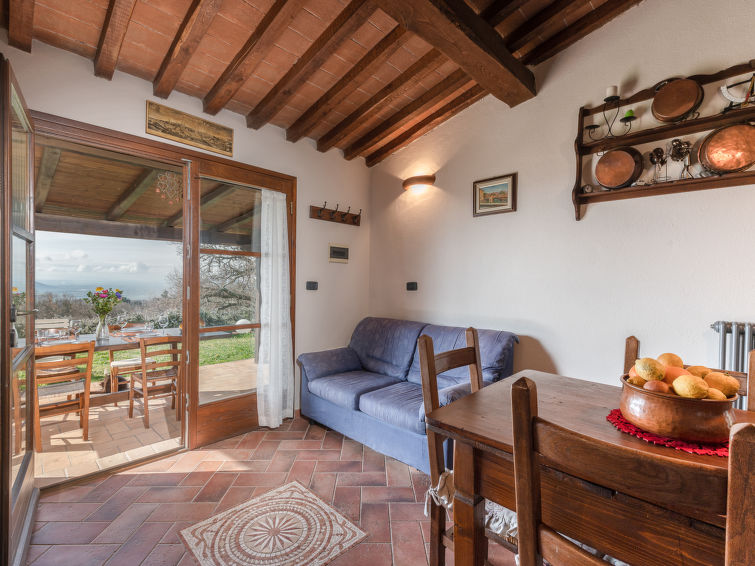 Cosy, rustic house "Dimora del Re", surrounded by trees and meadows. 800 m from the centre of Sassofortino, in a secluded, sunny position on a slope, 50 m from the edge of the forest, 40 km from the sea, 40 km from the beach, in the countryside. Private: natural state property 6 ha, beautiful, well-kept garden 2'000 m2 with lawn and wildlife garden. 600 m long motor access (via unmade road). Parking at the house. Shop, supermarket 800 m, bus stop 800 m, railway station "Grosseto" 33 km, ferry "Piombino" 69 km, sandy beach "Follonica/Castiglione d.Pescaia" 400 km. Golf course (18 hole) 30 km, walking paths from the house 50 m. Nearby attractions: Montemassi 10 km, Roccastrada 9 km, Civitella Marittima 20 km, Massa Marittima 30 km, Grosseto 34 km. Hiking paths: Mountain-bike 700 m. Please note: car recommended.3-room house 60 m2, on the ground floor. Rustic and cosy furnishings: living/dining room with open-hearth fireplace (only for decoration), dining table. Exit to the terrace. 1 double bedroom with TV. 1 large double bedroom with TV. Open kitchen (oven, dishwasher, kettle, freezer, electric coffee machine). Shower/bidet/WC. Wood heating. Large terrace roofed. Terrace furniture, barbecue. Marvellous panoramic view of the countryside. Facilities: washing machine, iron, mosquito net, baby cot for up to 2 year olds, hair dryer. Internet (WiFi, free). Please note: non-smokers only. Private entrance. IT053021C2LWTM9JU6