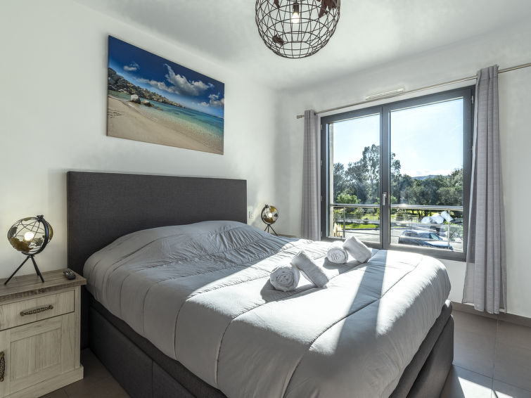 Beautiful residence "Domaine d'Arca". On the outskirts, 2 km from the centre of Porto Vecchio, 4 km from the sea, 8 km from the beach. For shared use: park 4 ha (fenced), swimming pool (seasonal availability: 01.Jun. - 01.Nov. pool opening hours: 10:00-20:00) with internal staircase. Unconventional pool shape. Outdoor shower, poolhouse with WC, tennis (2 x hard court), boccia, pool maintenance by the owner/gardener. Shop 2 km, grocery 1 km, supermarket 2 km, restaurant, bakery 500 m, bus stop 2 km, sandy beach "Santa Giulia" 8 km. Sports harbour 3 km, golf course (9 hole) 7 km, riding stable 3 km. Nearby attractions: Figari 18 km, Bonifacio 28 km, Solenzara 40 km, Iles Lavezzi. Hiking paths: Aiguilles de Bavella, Réserve naturelle de Bonifacio. Please note: car recommended. Suitable for families. Airfield close by 25 km from the property."Domaine d'Arca G7", 2-room apartment 50 m2 on 2nd floor. Modern furnishings: living/dining room with panoramic window with 1 double sofabed (140 cm, length 190 cm), TV (flat screen). Exit to the balcony, to the terrace. 1 room with 1 french bed (160 cm, length 200 cm). Exit to the terrace. Open kitchen (oven, dishwasher, 1 induction hot plates, 4 gas rings, kettle, microwave, electric coffee machine). Bath/WC. Electric heating, air-conditioning. Terrace 20 m2. Terrace furniture. Facilities: washing machine. Internet (WiFi, free). Parking. Please note: non-smokers only. Smoke alarm. 2A247000121E8