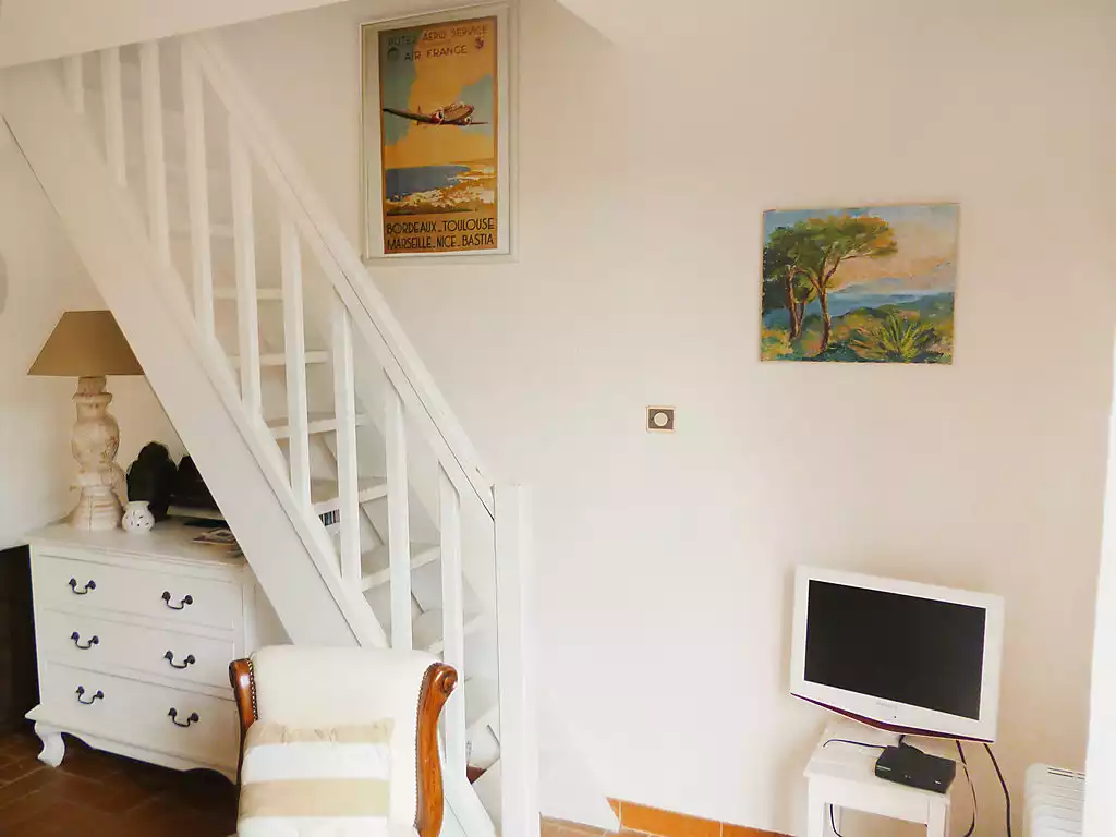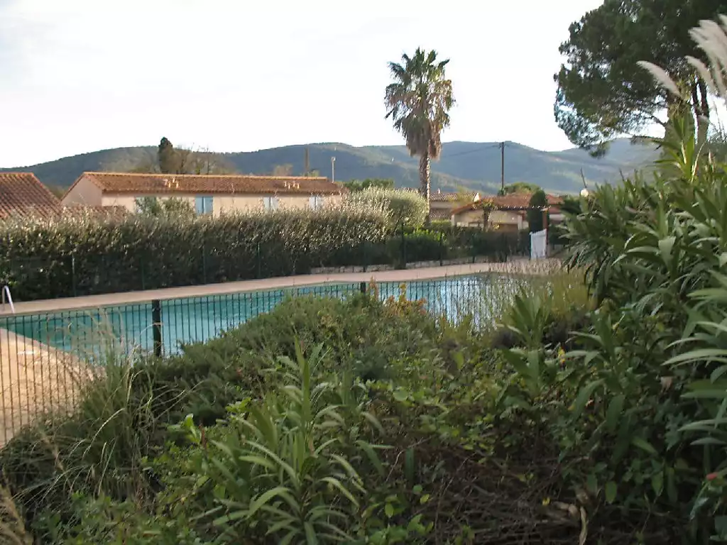 Cogolin: Beautiful residence "Domaine des Vignes". On the outskirts, 1.5 km from the centre of Cogolin, 6 km from the sea. For shared use: swimming pool angular (8 x 18 m, seasonal availability: 01.May. - 30.Sep.). Parking. Shop 1.5 km, grocery 1.5 km, supermarket 1.5 km, restaurant 1.5 km, bar 1.5 km, bus stop "Rond point de Kock" 1 km, sandy beach "Les Marines de Gassin" 6 km. Sports harbour 6 km, sailing school 6 km. Nearby attractions: Parc d'attractions Azur Park 4 km, Port Grimaud 4 km, Saint Tropez 11 km, Pampelonne 17 km, Cannes 84 km, Nice 110 km. Well-known lakes can easily be reached: Lac de Sainte Croix 92 km. Hiking paths: Massif de l'Esterel 50 km. Please note: car recommended. Residence with electric gates."Domaine des Vignes 4", 3-room house 50 m2 on 2 levels. Comfortable and beautiful furnishings: living/dining room with TV (flat screen). Exit to the garden. Kitchen (oven, dishwasher, 2 ceramic glass hob hotplates, microwave, freezer, electric coffee machine). Sep. WC. Upper floor: (steep stair), 1 room with 1 french bed (1 x 140 cm, length 190 cm), air conditioning. 1 room with 1 pull-out bed (2 pers. 2 x 90 cm, length 190 cm). Bathroom. Electric heating. Terrace, patio 40 m2. Terrace furniture. Facilities: washing machine. Internet (WiFi, extra). Parking space n 90. Please note: non-smokers only. 1 pet/ dog allowed. Smoke alarm.