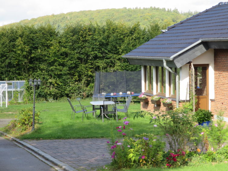 Kottenborn 5 km from Adenau: 2-family house "Dreser". On the outskirts, in a quiet position. For shared use: garden. Patio, garden furniture, children's playground (swing, sandbox). In the house: breakfast room, sauna (extra). Central heating system. Breakfast possible (extra). Parking at the house. Shop 5 km, restaurant 5 km, bus stop 200 m, railway station "Ahrbrück" 15 km. Golf course (18 hole) 39 km, tennis 5 km. Nearby attractions: Nürburgring (Start und Ziel) 6 km. Please note: car recommended. Garden and trampoline for children available.3-room apartment 75 m2, on the lower ground floor. 3 double bedrooms, each room with shower/WC and satellite TV. Kitchen-/living room in the entrance (4 hot plates, oven, toaster, kettle, microwave, electric coffee machine) with dining table. Barbecue (portable). Facilities: sauna (extra). Internet (WiFi, free). Please note: non-smokers only. The flat is located in the basement. Sauna EUR 30.00/use.