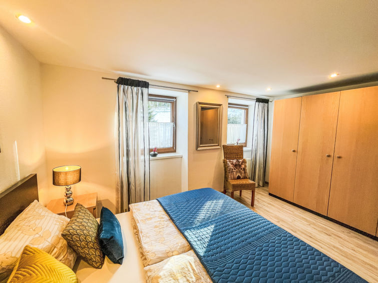 3-family house "Ehinger". In the resort, 50 m from the edge of the forest. In the house: central heating system. Parking at the house. Grocery 900 m, restaurant 1 km, bakery 900 m, bus stop "Eisenbach Rathaus" 150 m, railway station "Neustadt" 9 km, outdoor swimming pool 8 km. Golf course (9 hole) 14 km, tennis 3 km, ski lift 1.5 km, children's ski school 12 km, children's playground 1 km. Nearby attractions: Badeparadies Titisee 13 km, Triberger Wasserfälle 30 km, Residenzstadt Donaueschingen 23 km, Altstadt Freiburg 42 km, Europa Park Rust 75 km. Well-known ski regions can easily be reached: Feldberg 25 km. Well-known lakes can easily be reached: Titisee 13 km, Schluchsee 28 km, Kirnbergsee 11 km. Hiking paths: Hochschwarzwald 500 m, Wutachschlucht 18 km.2-room apartment 56 m2, on the ground floor. Beautiful and tasteful furnishings: living/dining room with satellite TV (flat screen), radio. 1 double bedroom. Open kitchen (4 hot plates, oven, dishwasher, electric coffee machine). Shower/WC. Patio 50 m2. Terrace furniture, barbecue, deck chairs (2). Facilities: iron, baby cot, hair dryer. Internet (WiFi, free). Please note: non-smokers only. Maximum 1 small pet/ dog allowed. Smoke alarm, fire extinguisher.
