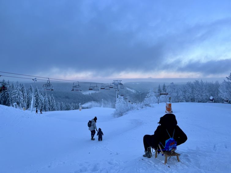 2-family house, 2 storeys. 500 m from the centre of Suhl, 9 km from the centre of Zella Mehlis, 55 km from the centre of Coburg. For shared use: property, garden. Shop, supermarket 500 m, restaurant 200 m, bus stop 200 m, railway station "Suhl" 1 km, outdoor swimming pool 5 km, indoor swimming pool 1 km. Tennis 100 m, ski lift 16 km, ski school 16 km, cross country ski track 16 km, children's playground 250 m. Well-known ski regions can easily be reached: Oberhof 16 km, Goldlauter 7 km."Eliese", 2-room apartment 57 m2, on the ground floor. Renovated in 2021, modern and cosy furnishings: living/sleeping room with 1 double sofabed, dining table and cable TV (flat screen). 1 room with 1 double bed. Kitchenette (oven, dishwasher, 4 ceramic glass hob hotplates, toaster, kettle, microwave, freezer, electric coffee machine) with bar. Sep. WC, bath/shower/WC. Gas heating. Patio 30 m2. Terrace furniture, barbecue (portable), deck chairs (2). Facilities: washing machine, baby cot. Internet (WiFi, free). Parking (1 car). Please note: non-smokers only. Maximum 2 pets/ dogs allowed. Smoke alarm.