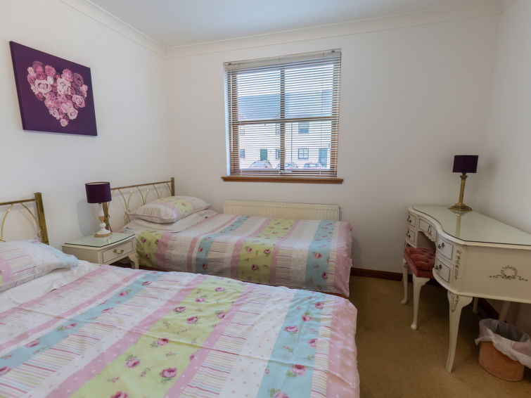 Inverness: Modern, comfortable apartment block. On the outskirts, 3 km from the centre of Inverness, in the residential district, 21 km from the lake, 28 km from the beach. Private: terraced garden (not fenced). Terrace. In the house: central heating system. Parking at the house. Shop 2 km, supermarket 2 km, shopping centre 3 km, restaurant 2 km, bus stop "Bus Station" 4 km, railway station "Inverness" 3 km, sandy beach "Nairn" 28 km. Golf course (18 hole) 50 m. Nearby attractions: Inverness Castle & Museum 3 km, Culloden Battlefield 10 km, Inverness Leisure 3 km. Well-known lakes can easily be reached: Loch Ness 21 km. Hiking paths: Great Glen Way. Please note: baby equipment on request (extra)."Elm Grove", 3-room apartment 75 m2, on the ground floor. Comfortable and modern furnishings: living/dining room with dining table and TV (flat screen), radio. Exit to the terrace. 1 double bedroom with 1 double bed and shower/WC. 1 double bedroom with 2 beds. Kitchen (4 hot plates, oven, microwave, freezer). Bath/shower/WC. Gas heating. View of golf course. Facilities: washing machine, hair dryer. Free. Parking at the house. Please note: non-smoking house. TV only EN. Private entrance. HI-50083-F