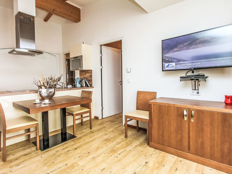 Piesendorf-Fürth: Modern, comfortable apartment block "Emma", 3 storeys. 2 houses in the residence. In a sunny, elevated position on a slope, 1 km from the lake, 2.5 km from the skiing area. In the house: sauna (extra). Storage room for skis, ski boot dryer. Bread roll service. In Winter: please take snow chains. Roofed, parking at the house. Supermarket 2.5 km, restaurant 280 m, bus stop "nach Kaprun und Zell am See" 500 m, outdoor swimming pool 3 km, thermal baths "Tauern Spa Kaprun" 1.7 km. Golf course (36 hole) 2.5 km, gondola lift 2.7 km, cross country ski track 1 km. Well-known ski regions can easily be reached: Maiskogel 2.7 km, Schmittenhöhe 8.9 km, Kitzsteinhorn 9 km. Well-known lakes can easily be reached: Zeller See 6.5 km. The holiday properties may differ in living space, floorplan, equipment and furnishing. The check-in for the Emma Apartments is in the Emma Deluxe apartment building (Fürth 153, 5721 Piesendorf). Late arrivals are only possible by prior arrangement (24 hours in advance).2-room apartment 40 m2. Bright, tasteful and cosy furnishings: 1 double bedroom with satellite TV (flat screen). Living/sleeping room with 1 double sofabed, dining table and satellite TV (flat screen). Luggage room. Open kitchen (oven, dishwasher, 4 ceramic glass hob hotplates, toaster, kettle, microwave, electric coffee machine, Capsules for coffee machine (Nespresso) extra). Bath/bidet/WC. Underfloor heating. Large balcony. Balcony furniture. Very beautiful panoramic view of the mountains. Facilities: hair dryer. Internet (WiFi, free). Please note: non-smokers only. Maximum 1 pet/ dog allowed. Smoke alarm. The property is one of a type of property or apartment. 50616-001123-2020