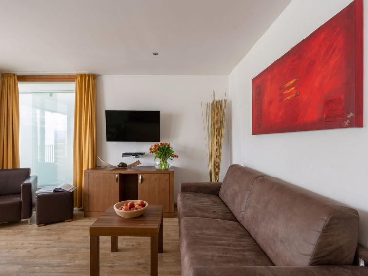 Piesendorf-Fürth: Modern, comfortable apartment block "Emma", 3 storeys. 2 houses in the residence. In a sunny, elevated position on a slope, 1 km from the lake, 2.5 km from the skiing area. In the house: sauna (extra). Storage room for skis, ski boot dryer. Bread roll service. In Winter: please take snow chains. Roofed, parking at the house. Supermarket 2.5 km, restaurant 280 m, bus stop "nach Kaprun und Zell am See" 500 m, outdoor swimming pool 3 km, thermal baths "Tauern Spa Kaprun" 1.7 km. Golf course (36 hole) 2.5 km, gondola lift 2.7 km, cross country ski track 1 km. Well-known ski regions can easily be reached: Maiskogel 2.7 km, Schmittenhöhe 8.9 km, Kitzsteinhorn 9 km. Well-known lakes can easily be reached: Zeller See 6.5 km. The holiday properties may differ in living space, floorplan, equipment and furnishing. The check-in for the Emma Apartments is in the Emma Deluxe apartment building (Fürth 153, 5721 Piesendorf). Late arrivals are only possible by prior arrangement (24 hours in advance).3-room apartment 54 m2. Bright, tasteful and cosy furnishings: 2 double bedrooms, each room with satellite TV and flat screen. Living/sleeping room with 1 double sofabed, dining nook, satellite TV and flat screen. Luggage room. Open kitchen (oven, dishwasher, 4 ceramic glass hob hotplates, toaster, kettle, microwave, electric coffee machine, Capsules for coffee machine (Nespresso) extra). Bathroom, shower, sep. WC. Underfloor heating. Large balcony. Balcony furniture. Very beautiful panoramic view of the mountains. Facilities: hair dryer. Internet (WiFi, free). Please note: non-smokers only. Maximum 1 pet/ dog allowed. Smoke alarm. The property is one of a type of property or apartment. 50616-001123-2020