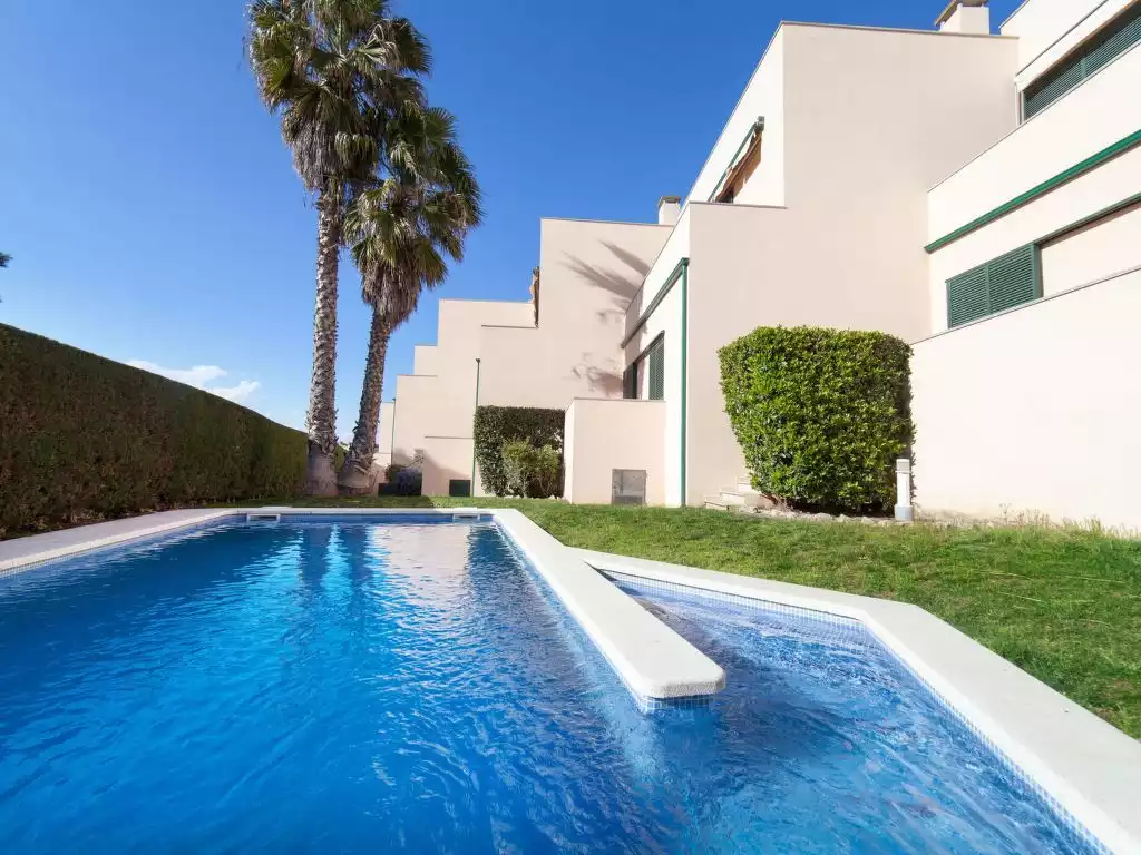 Sector Puig Pedró: Modern, comfortable 2-family house "Empuries Beach", 2 storeys, built in 2003. On the outskirts, 850 m from the centre of L'Escala, in a sunny position on a slope, 400 m from the sea, 450 m from the beach. For shared use: garden lawn and plants, swimming pool angular (10 x 4 m, seasonal availability: 01.Jun. - 30.Sep.). Private: garden (fenced). Stepped path (20 steps) to the house. Supermarket 550 m, restaurant 800 m, internet café 850 m, bicycle rental 500 m, bus stop 600 m, sandy beach "Platja del Rec/Empùries" 450 m, shingle beach "Platja de La Creu" 600 m, diving center 2.2 km, indoor swimming pool 400 m. Sports harbour 2.6 km, surf school 2.2 km, sailing school 2.2 km, tennis 400 m, riding stable 1.9 km. Nearby attractions: Ruinas Greco-Romanas d'Empùries 1.1 km, Skydive Empuriabrava 23 km, Parque acuatico AquaBrava Roses 27 km, Casino-Festival de Perelada 30 km, Museo Dalí Figueres 26 km, Pitch and Putt Gualta 15 km.4-room maisonette 65 m2 on 2 levels. Comfortable and cosy furnishings: living/dining room with digital TV and DVD. Exit to the terrace. 1 room with 1 pull-out bed (2 pers.). Kitchen (4 hot plates, oven, dishwasher, microwave, freezer). Shower/WC. No heating option. On the lower ground floor: 1 room with 2 beds. 1 room with 1 french bed. Bath/bidet/WC. Terrace furniture. Side view of the swimming pool and the garden. Facilities: washing machine. Please note: TV only ES. Air conditioning available only on the main floor. HUTG001365 // Reg. Nr.: ESFCTU0000170100003118600000000000000HUTG-001365-542