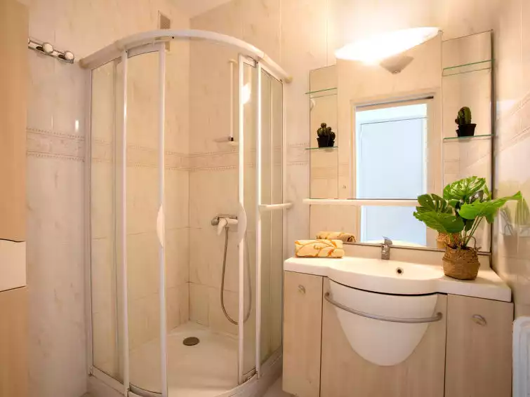 Residence "Epsom", 6 storeys. In the district of hippodrome, in the residential district, excellent location: right in the centre but still quiet, from the sea, 280 m from the beach. Grocery 700 m, supermarket, restaurant 300 m, bakery 700 m, bicycle rental 500 m, bus stop "grand large" 300 m, railway station "cagnes centre" 800 m, shingle beach. Sports harbour 2.4 km, marina 2.4 km, sailing school 1.7 km, fishing possibilities 1.7 km. Nearby attractions: HIPPODROME DE LA COTE d'AZUR 300 m, HAUT DE CAGNES MEDIEVAL 1.8 km, MUSEE RENOIR CAGNES 1.8 km, PROMENADE DES ANGLAIS NICE 10 km, MARINELAND ANTIBES 6.4 km, PARC DEPARTEMENTAL DE VAUGRENIER 4.8 km.3-room apartment 60 m2 on 1st floor. Comfortable and modern furnishings: living/dining room with 1 sofabed (140 cm, length 190 cm), TV (flat screen). Exit to the terrace. 1 room with 2 beds (90 cm, length 190 cm). 1 room with 1 french bed (1 x 140 cm, length 190 cm). Exit to the terrace. Kitchen (oven, dishwasher, 3 ceramic glass hob hotplates, toaster, kettle, microwave, freezer, electric coffee machine). Exit to the balcony. Shower, sep. WC. Heating. Terrace 15 m2, south facing position. Terrace furniture. Partial view of the sea. Facilities: washing machine, iron, hair dryer. Internet (WiFi, free). Parking space n 3 (1 car). Please note: non-smokers only. Maximum 1 pet/ dog allowed. Smoke alarm. Offer by a private individual according to Art. 155, IV of CGI. 06027027974HT