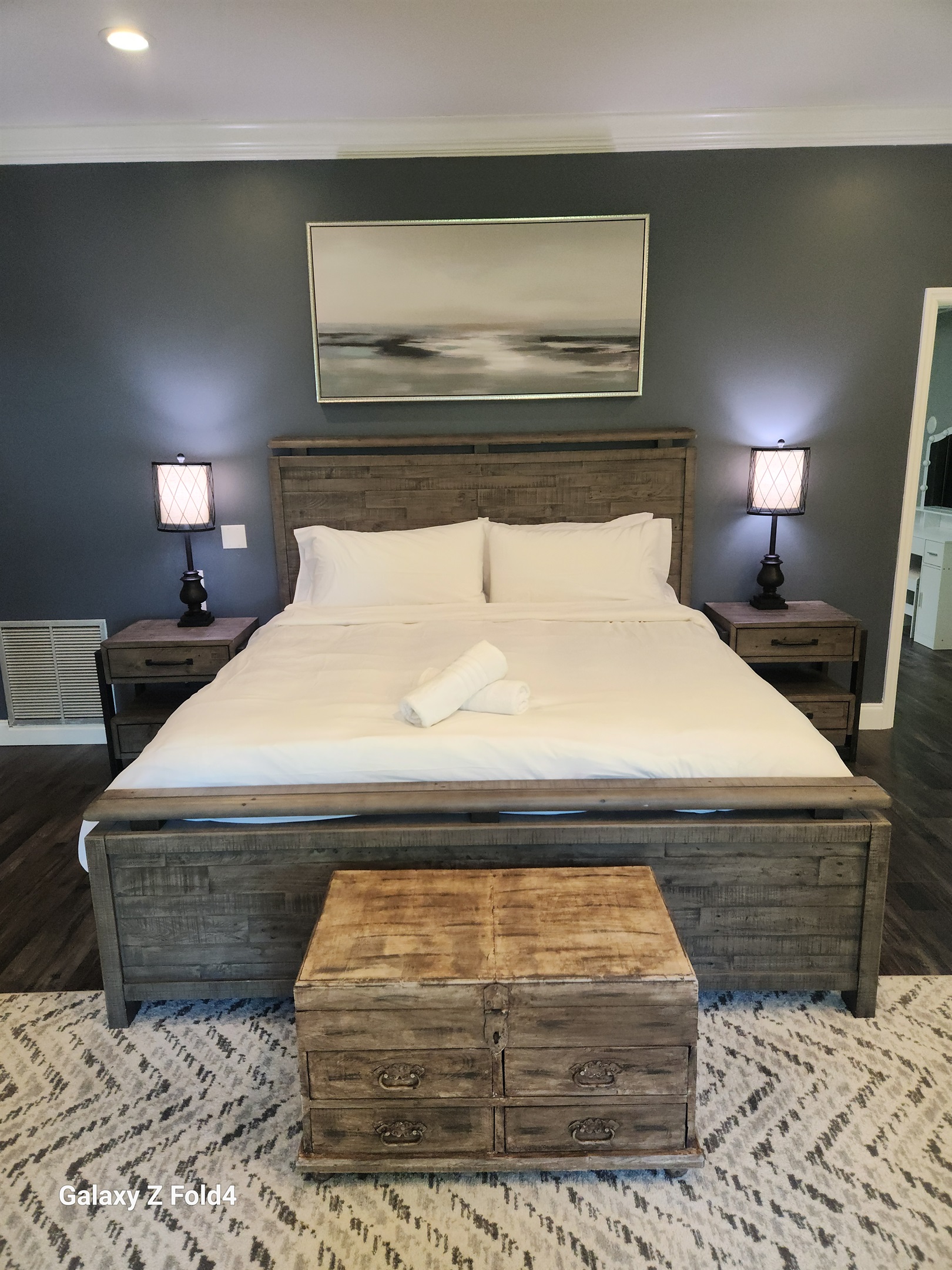 The upstairs has another master room with a king bed and there is 3 additional rooms that offer comfort and privacy for up to 8 more guests in total, with plush bedding, ample storage, and modern amenities. Each of the 3 rooms have a full/double mattress with luxury white bedding and we also have 2 twin mattresses we leave in the closet incase you have a few extra guest you would like to stay! (Please request bedding for these so we can leave fresh sheets for you during your stay. Any additional beds need to be brought yourself or discussed reasonably in advance so we can help arrange sleeping )