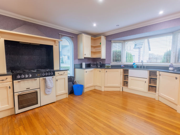 Inverness: Modern, comfortable villa "Evergreen House", 2 storeys, semi-detached. On the outskirts, 3 km from the centre of Inverness, in a quiet position in the residential district, 21 km from the lake, 28 m from the beach, 3 km from the canal, 3 km from the river. Parking at the house. Shop 2 km, supermarket 3 km, shopping centre 3 km, restaurant 3 km, bus stop "Bus Station" 4 km, railway station "Inverness" 3 km, sandy beach "Nairn" 28 km. Golf course (18 hole) 3 km. Nearby attractions: Inverness Castle & Museum 3 km, Culloden Battlefield 10 km, Inverness Leisure 3 km. Well-known lakes can easily be reached: Loch Ness 21 km. Hiking paths: Great Glen Way.7-room villa on 2 levels. Modern and tasteful furnishings: living room with TV (flat screen), radio, DVD and gas heater. Dining room with dining table. Large kitchen (oven, dishwasher, Gas stove, 4 gas rings, freezer, combination microwave). Upper floor: 4 double bedrooms, each room with 1 double bed. 1 double bedroom with 1 double bed and shower/WC. Bath/shower/WC. Gas heating. Facilities: washing machine, dryer, hair dryer. Internet (WiFi, free). Parking at the house. Please note: TV only EN. Please note:- No hen or stag parties. HI-50062-F