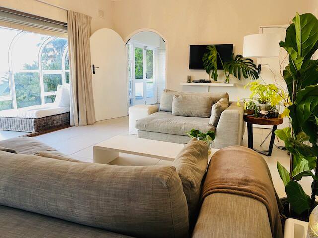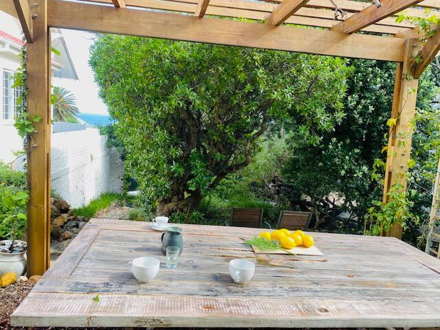 Amazing ocean and sunset views . Peaceful garden. Solar & battery back-up. There are views from the patio, living room and kitchen. Outdoor dining in 2 different areas. Fast fiber wifi. Air-con in the lounge. Close to Bakoven beach and under 15 min walk to the main beach and restaurants. Famous restaurant & excellent bakery/deli a short stroll away.