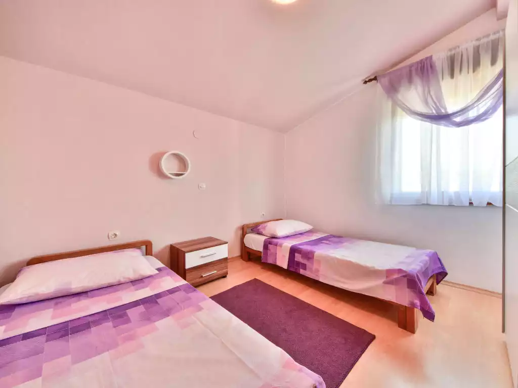 Apartment house "Fani". In the district of Banjol 1.2 km from the centre of Rab, in a quiet, sunny position, 300 m from the sea, 300 m from the beach, in the countryside. For shared use: property 550 m2. Barbecue. In the house: internet access. Parking at the house on the premises. Shop 280 m, restaurant 700 m, bus stop 1 km, sandy beach 300 m pebble beach 700 m, concrete beach 500 m. Marina 700 m.2-room apartment 54 m2 on 2nd floor. 1 room 16 m2 with 1 double bed (2 x 90 cm, length 200 cm). Exit to the terrace. 1 room 9 m2 with 2 beds (90 cm, length 200 cm). Dining room 19 m2 with satellite TV (flat screen), air conditioning. Open kitchen (2 hot plates). Shower/WC. Terrace 11 m2 partly roofed. Terrace furniture. Facilities: Internet (WiFi, free). Please note: non-smoking house.