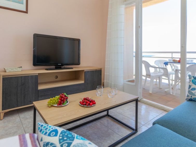 Apartment block "Fénix Marina", 5 storeys. On the outskirts, 1.5 km from the centre of L'Escala, in a central, busy position, 70 m from the sea, 70 m from the beach. In the house: lift. Short-stay parking zone (fee), time: 09:00 - 20:00. Supermarket 250 m, shopping centre, restaurant, bar 70 m, bus stop 3.4 km, sandy beach "Riells" 70 m, diving center 300 m. Sports harbour 350 m. Nearby attractions: Ruinas Greco Romanas d'Empùries 3.2 km, Skydive Empuriabrava 23 km, Parque acuatico AQUABRAVA Roses 27 km, Casino-Festival de Perelada 30 km, Museo Dalí Figueres 26 km, Pitch and Putt Gualta - 18 hoyos 15 km. Please note: entertainment in the season. Baby equipment.3-room apartment 67 m2 on 4th floor. Practical and cosy furnishings: entrance hall. Living/dining room with dining table, digital TV and air conditioning. Exit to the balcony. 2 rooms, each room with 2 beds (90 cm, length 190 cm). Kitchen (oven, dishwasher, 4 ceramic glass hob hotplates, microwave, electric coffee machine). Exit to the balcony. Shower/bidet/WC. Boiler (50 litres). No heating option. Small balcony balcony. Balcony furniture. Beautiful view of the sea. Facilities: washing machine. Internet (WiFi, free). Please note: non-smokers only. TV only ES. HUTG035952 // Reg. Nr.: ESFCTU00001701000021782700000000000000HUTG-035952-514
