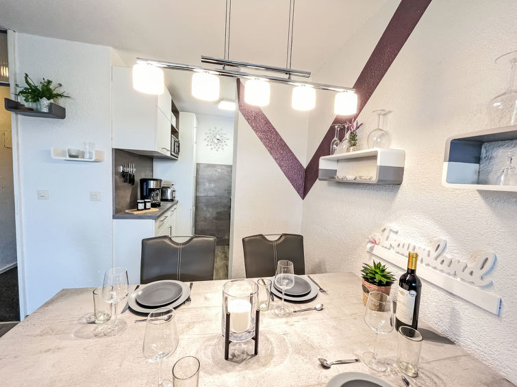 Apartment block "Taborstrasse". On the outskirts, 300 m from the centre. For shared use: indoor pool heated (16 x 10 m, seasonal availability: 15.Sep. - 15.Jun., extra). Table tennis, children's playground. In the house: lift, central heating system. Parking at the house. Supermarket 3 km, restaurant 300 m, bakery 4 km, bicycle rental 16 km, bus stop "Rathaus" 300 m, railway station "Löffingen" 5 km, outdoor swimming pool 500 m. Golf course (18 hole) 20 km. Nearby attractions: Freiburg 45 km. Well-known ski regions can easily be reached: Feldberg 35 km. Well-known lakes can easily be reached: Kirnbergsee 6 km, Titisee 23 km, Schluchsee 39 km. Free family ski lift 800 m. The holiday complex consists of two buildings connected by a corridor. Access to the indoor pool (fee required) only with online reservation. Current opening times on the Internet. During the summer holidays: indoor pool closed, outdoor pool free entry. PLEASE NOTE: The apartments in the apartment buildings can only be rented for tourist purposes. Company bookings only on request (confirmation required)."Flieder (F 96)", 2-room apartment 54 m2 on 2nd floor. Modern and tasteful furnishings: living/dining room with satellite TV (flat screen). Alcove with curtain with 1 x 2 bunk beds. 1 room with 1 double bed (2 x 100 cm, length 200 cm). Kitchenette (oven, dishwasher, 4 induction hot plates, toaster, kettle, microwave, electric coffee machine). Bath/WC. Balcony. Balcony furniture. Beautiful view of the countryside. Facilities: iron, children's high chair (extra), hair dryer. Internet (WiFi). Parking (1 car) at the house. Please note: non-smokers only. The balcony is glazed. Please note: The lower bunk bed is 140 cm wide. Bookings accepted for holiday purposes only. Instead of an enclosed bedroom, some sleeping areas are located in an open-plan area (gallery, alcove, etc.).