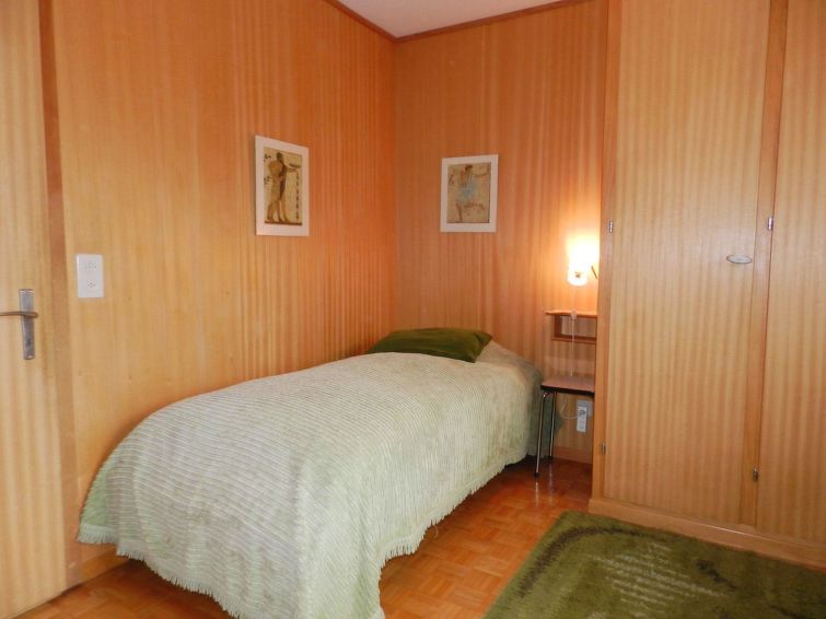 Living/dining room with sofa which converts into a conventional bed (140x200cm), swedish oven, TV, dining table and open-plan kitchen (equipped among other things with oven, dishwasher, refrigerator with freezer, coffee machine with capsules (Delizio) as well as fondue- and a raclette-set). 1 bedroom with 2 single beds pushed together (2x90x200cm). 1 bedroom with 2 single beds (each 90x190cm). 1 bathroom with bathtub/toilet and combined washing machine/tumble dryer. WiFi.