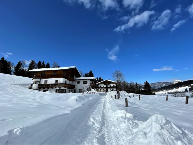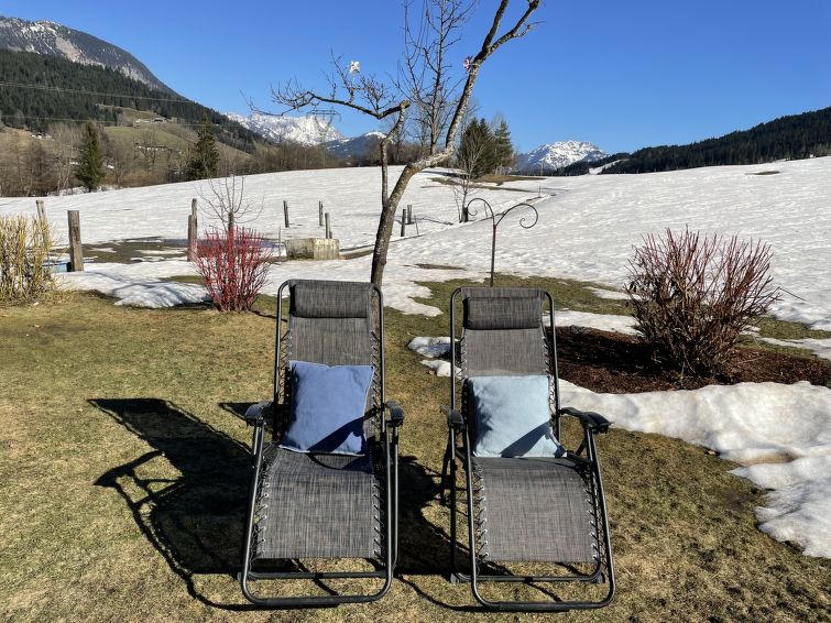 St. Johann in Tirol: Modern, beautiful single-family house "Gassreith", 670 m a.s.l., surrounded by meadows and fields. In the district of Winkl 3 km from the centre of St. Johann, 10 km from the centre of Fieberbrunn, 12 km from the centre of Kitzbühel, in a secluded, quiet, sunny position on a slope, 9.5 km from the lake, 1.5 km from the skiing area, in a cul-de-sac. Private: property 600 m2 with lawn and flowers, lawn for sunbathing, beautiful garden to relax. In the house: central heating system. 200 m long narrow motor access to the house. In Winter: please take snow chains, 4x4 car recommended in winter. Roofed, parking on the premises. Shop 3 km, supermarket 3 km, restaurant 900 m, bus stop 800 m, railway station "St. Johann/Tirol" 3 km, outdoor swimming pool 3 km, indoor swimming pool 3 km, bathing lake "Going" 9.5 km. Golf course (9 hole) 10 km, mountain railway 3 km, ski lift 1.5 km, gondola lift 10 km, ski bus stop 800 m, ski school 1.5 km, cross country ski track 1 km. Well-known ski regions can easily be reached: KitzSki 14 km, Fieberbrunn 10 km, Skiwelt Wilder Kaiser - Brixental 10 km. Well-known lakes can easily be reached: Badesee Going 9.5 km, Schwarzsee bei Kitzbühel 12 km. Hiking paths: Kitzbüheler Alpen, Wilder Kaiser - Brixental. Please note: the owner lives in the same residence."Gassreith", 2-room apartment 54 m2, on the ground floor. Cosy furnishings: living/sleeping room with 1 double sofabed, dining nook and satellite TV. 1 room with 1 bed, 1 double bed and shower/WC. Open kitchen (4 hot plates, oven, toaster, kettle, electric coffee machine). Sep. WC. Underfloor heating. Terrace, lawn 600 m2. Terrace furniture, barbecue, deck chairs, box-room. Beautiful view of the mountains, the valley and the countryside. Facilities: children's high chair, baby cot, hair dryer. Internet (WiFi, free). Please note: maximum 1 pet/ dog allowed. Private entrance, smoke alarm. Second pet upon request. Gondola Bonus: For stays of two or more nights in summer in St. Johann in Tirol, Oberndorf, Kirchdorf, or Erpfendorf, a free round-trip ride on the Harschbichlbahn cable car operated by St. Johanner Bergbahnen is included in the guest card.